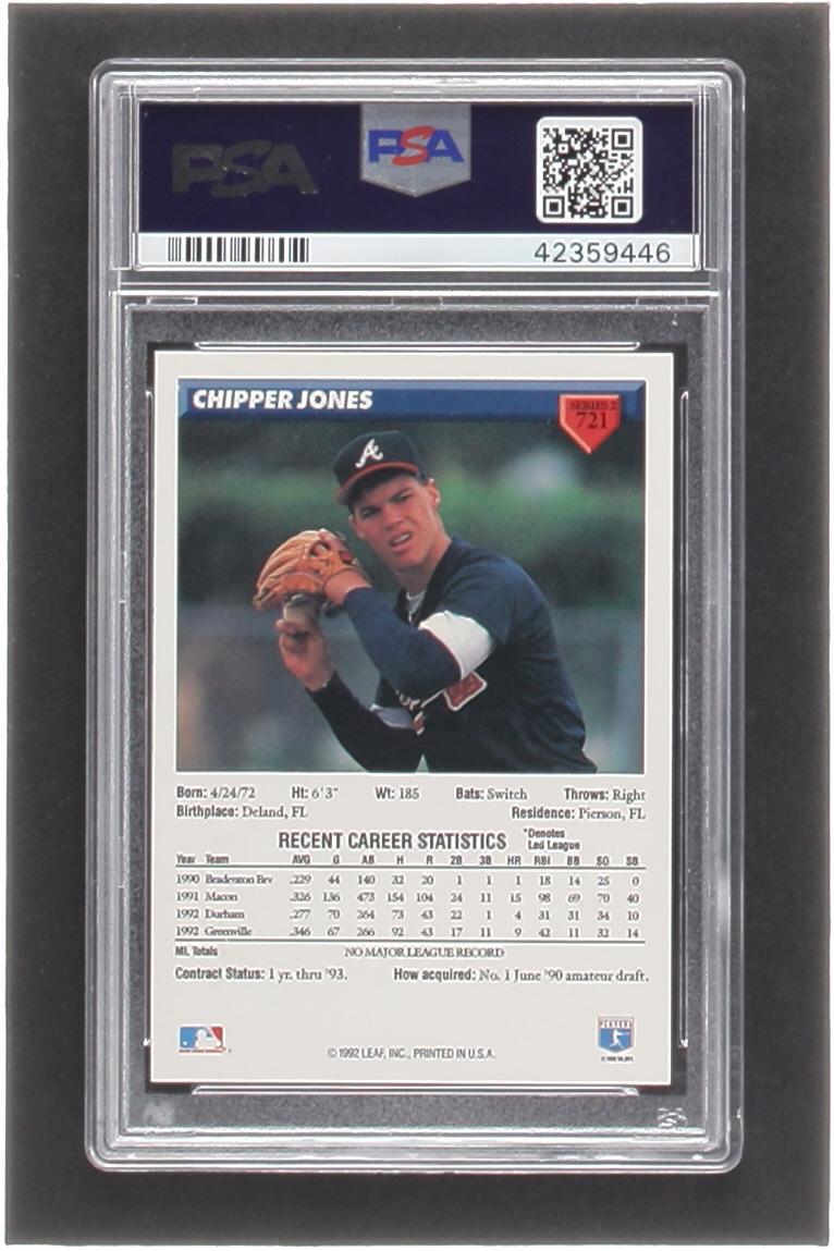 Chipper Jones Signed 1993 Donruss #721 RC (PSA | Autograph Graded 10)