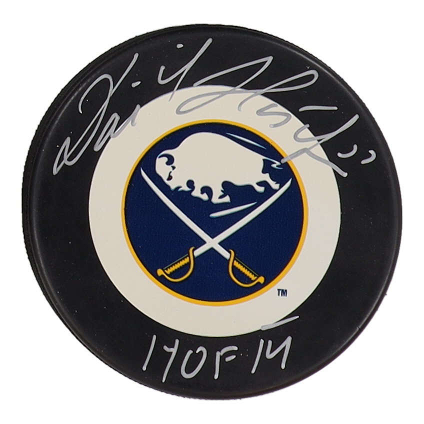 Dominik Hasek Signed Sabres Logo Hockey Puck Inscribed "HOF 14" (SportsAuthentix)