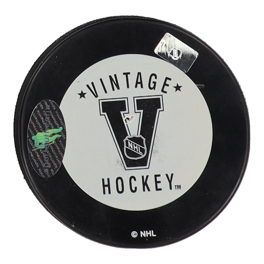 Buffalo Sabres logo hockey puck has been hand-signed and inscribed by Dominik Hasek (HOF). Please refer to photos for condition of the puck.