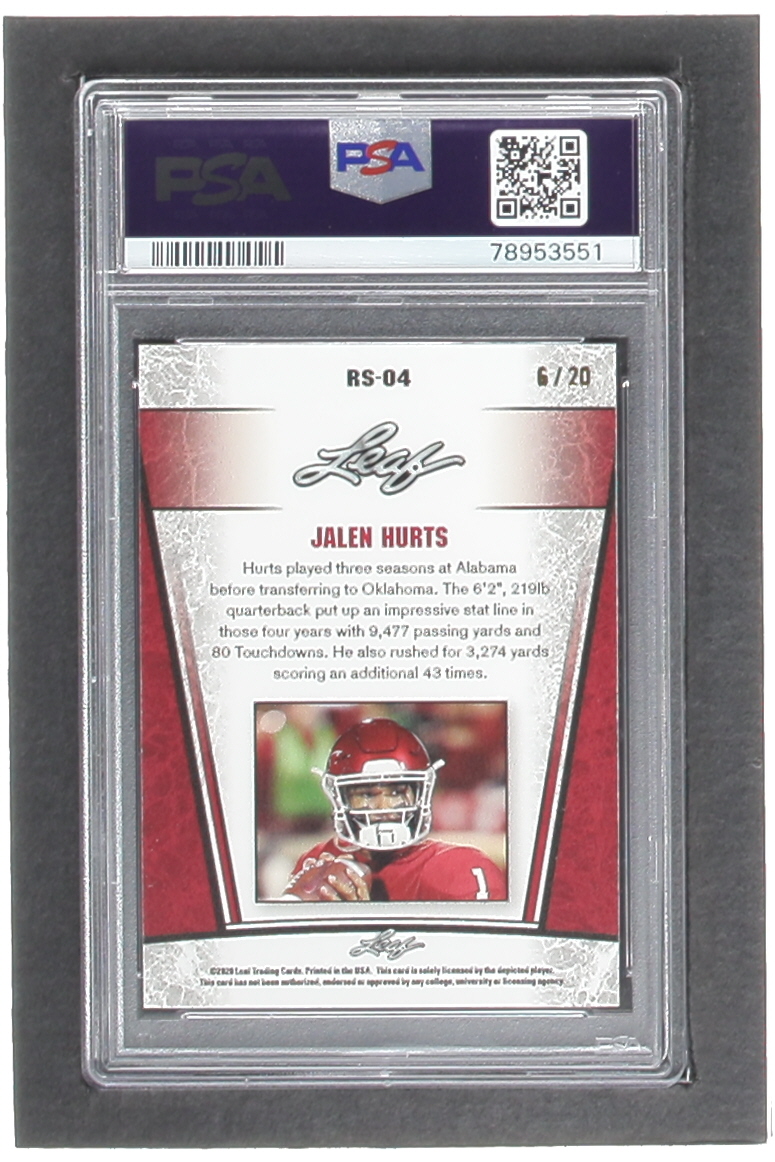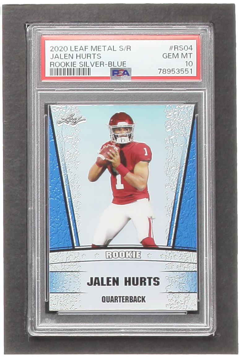 Jalen Hurts 2020 Leaf Metal Special Release Rookie Silver Rainbow Blue #SR2004 RC #6/20 (PSA 10)