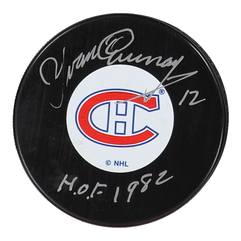 Yvan Cournoyer Signed Canadiens Logo Hockey Puck Inscribed "H.O.F. 1982" (COJO & Frozen Pond)