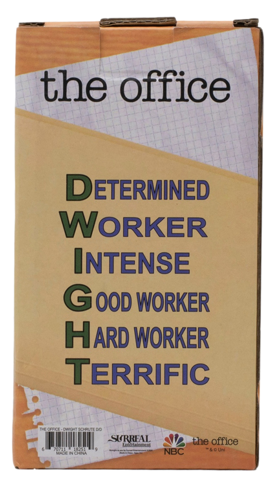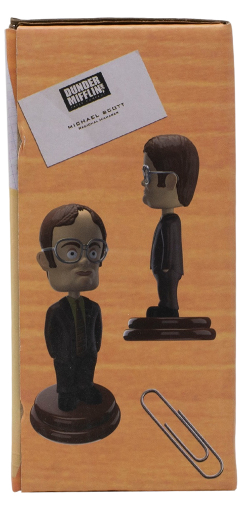Bobblehead figure measures approximately 5.5" tall and comes in the original box. Box has been hand-signed by Rainn Wilson (Dwight Schrute)