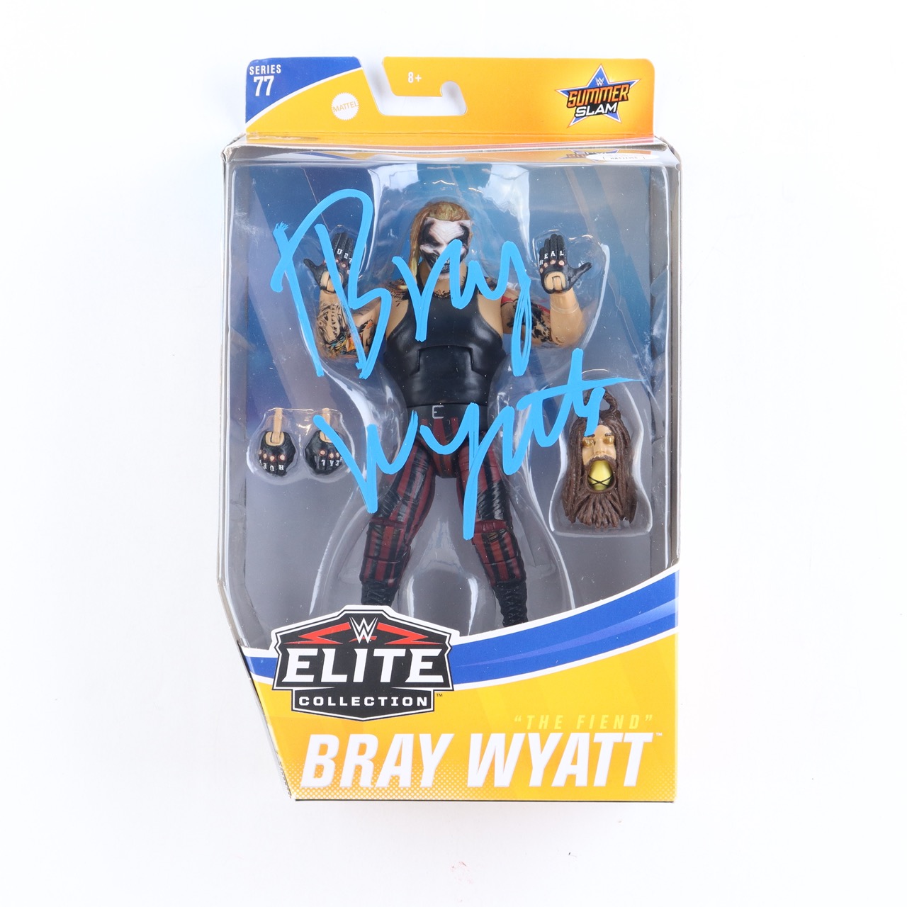 Action figure measures approximately 9" tall. Hand-signed on the packaging by Bray Wyatt.
