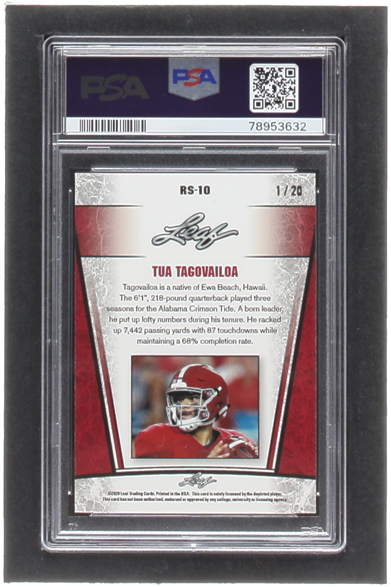 Tua Tagovailoa 2020 Leaf Metal Special Release Rookie Silver Rainbow Blue #SR2010 RC #1/20 (PSA 10)