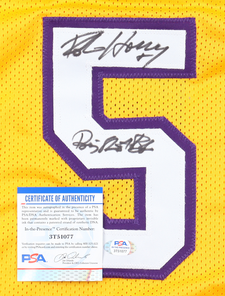 Custom jersey with everything is sewn on, size XL. Hand-signed and inscribed by Robert Horry.