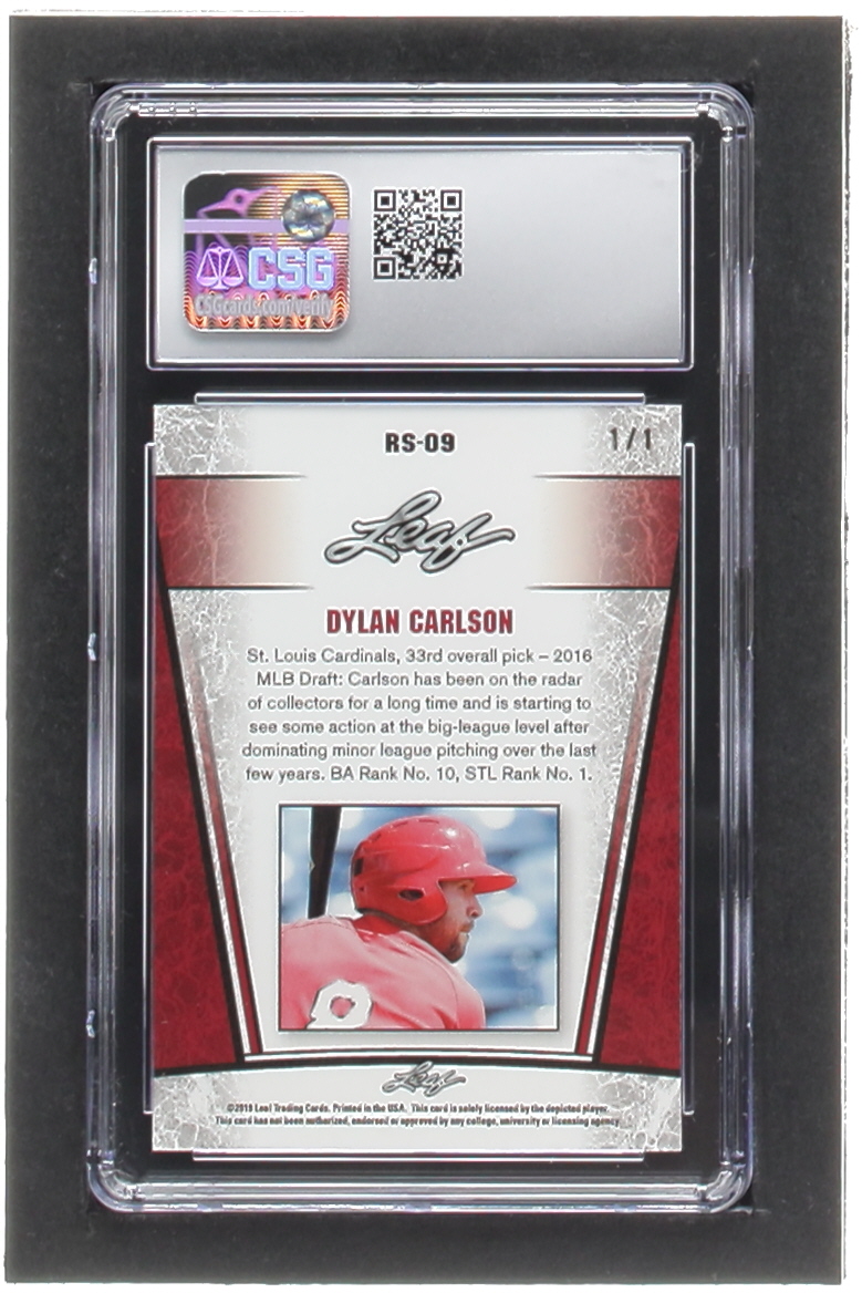 Dylan Carlson 2019 Leaf Metal Special Release Rookie Silver Rainbow Platinum Blue #SR1909 RC #1/1 (CSG 9.5)