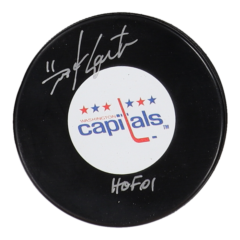 Washington Capitals logo hockey puck. Hand-signed by Mike Gartner (HOF). Please refer to photos for condition of the puck.