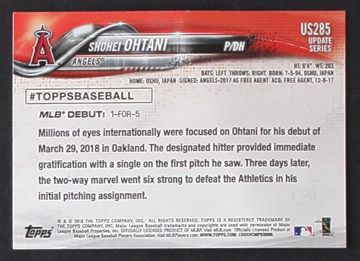 Shohei Ohtani 2018 Topps Update #US285 RD RC