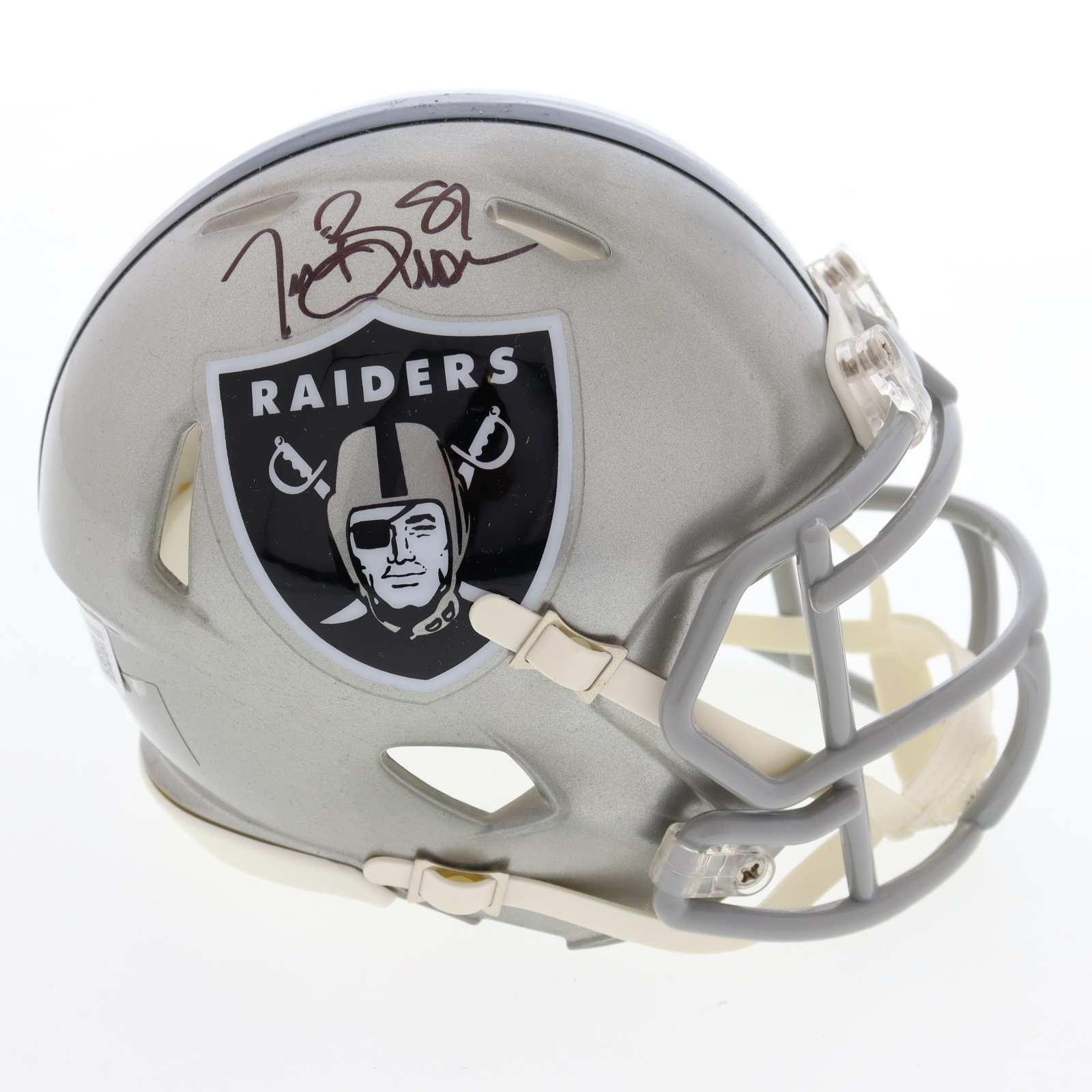 Riddell Las Vegas Raiders Flash Alternate Speed mini helmet. Hand-signed by Tim Brown (HOF).