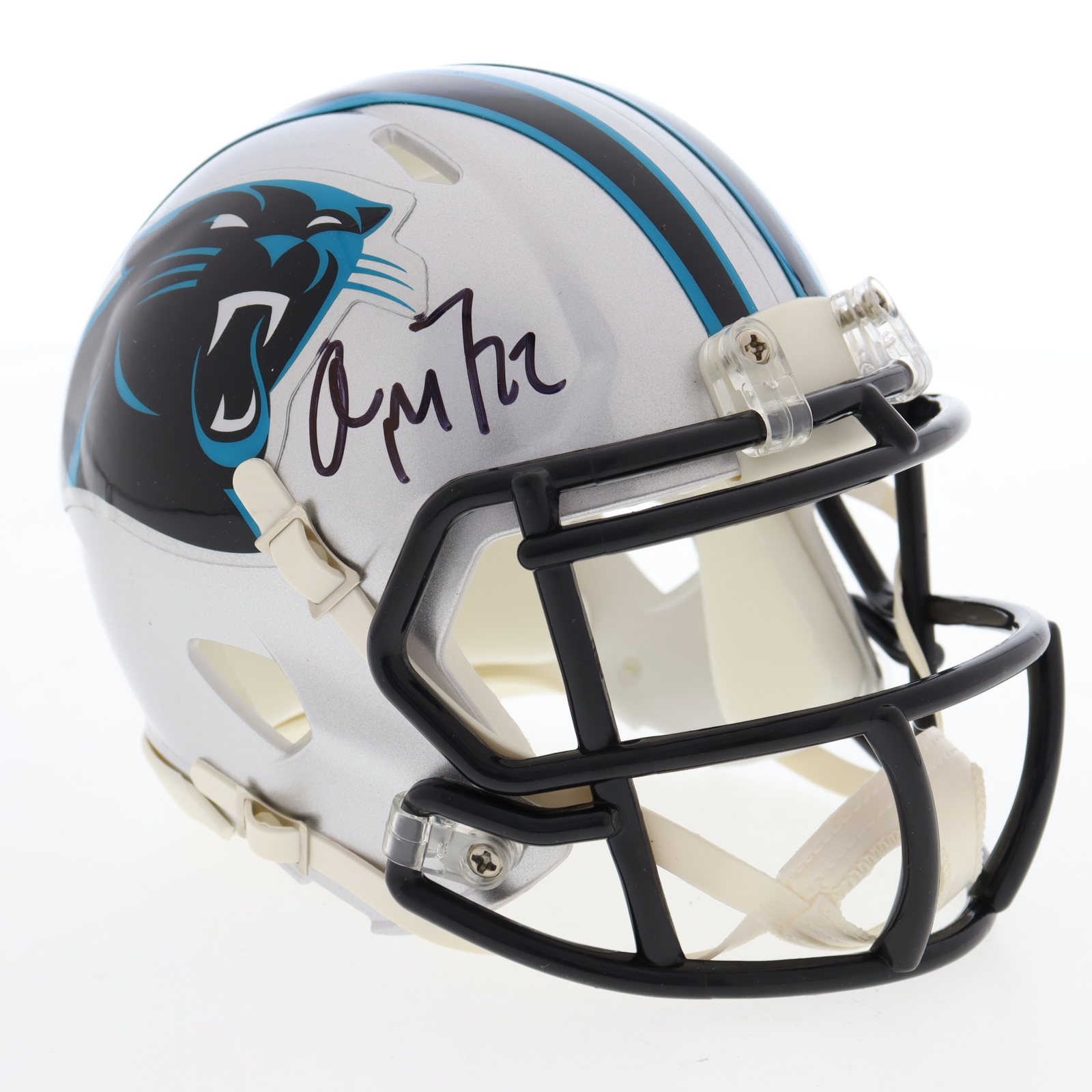Riddell Carolina Panthers mini helmet. Hand-signed by Christian McCaffrey.