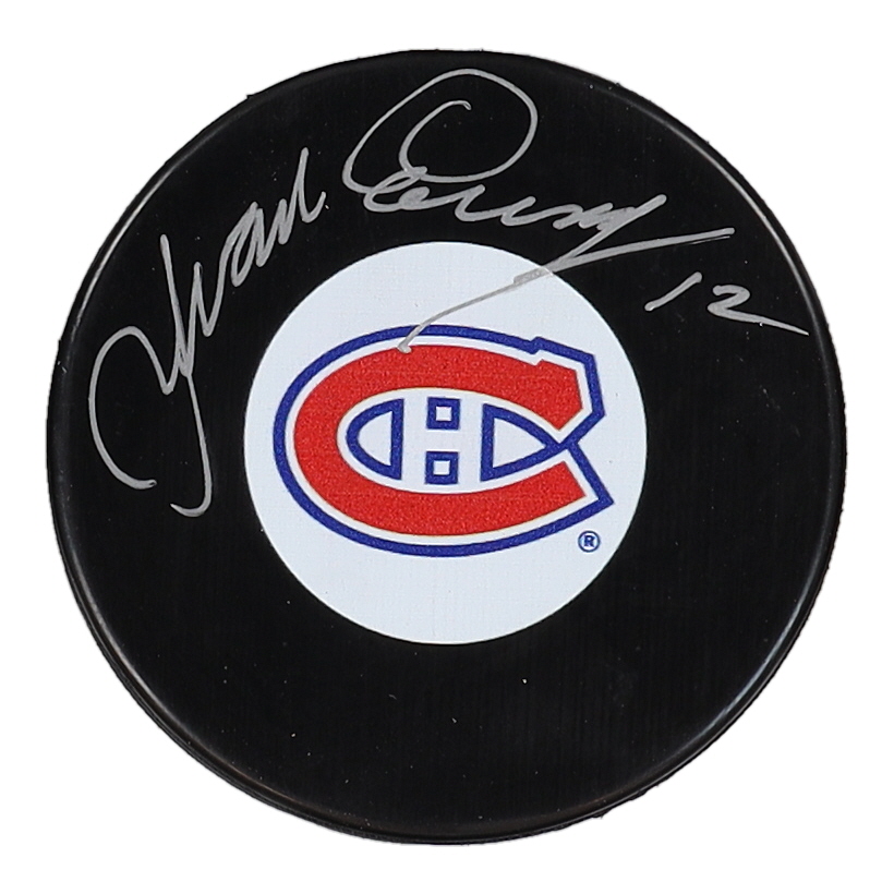 Yvan Cournoyer Signed Canadiens Logo Hockey Puck (COJO)