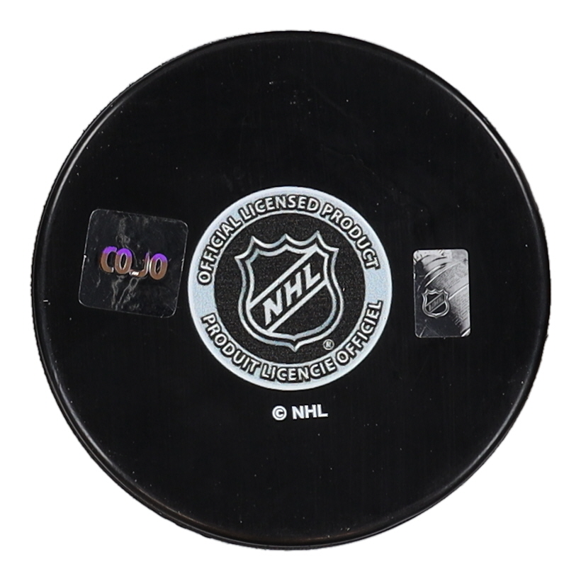 Montreal Canadiens logo hockey puck. Hand-signed by Yvan Cournoyer (HOF). Please refer to photos for condition of the puck.