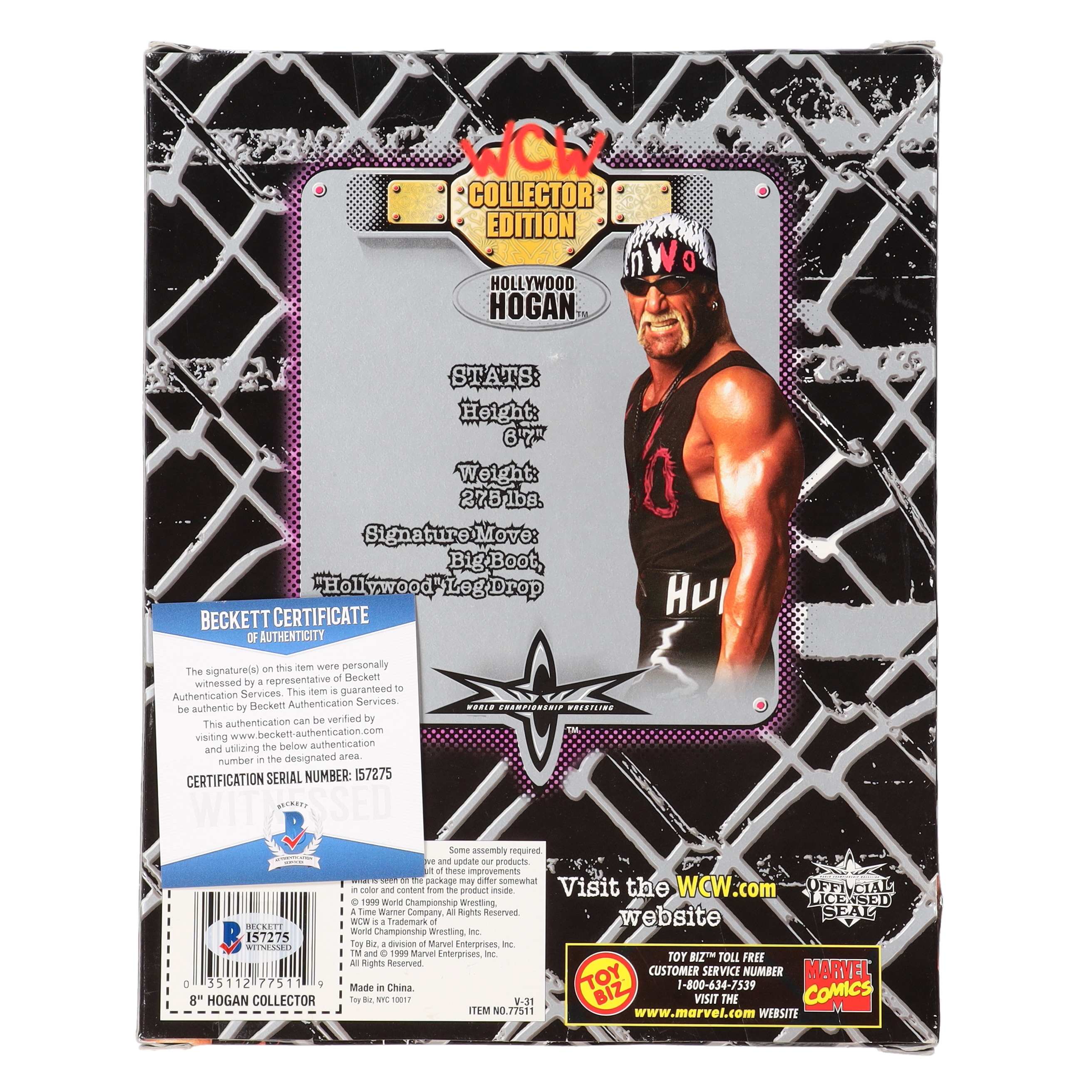 WCW action figure measures approximately 9" in height. The packaging has been hand-signed by Hulk Hogan (HOF). Please refer to photos for condition of the packaging.