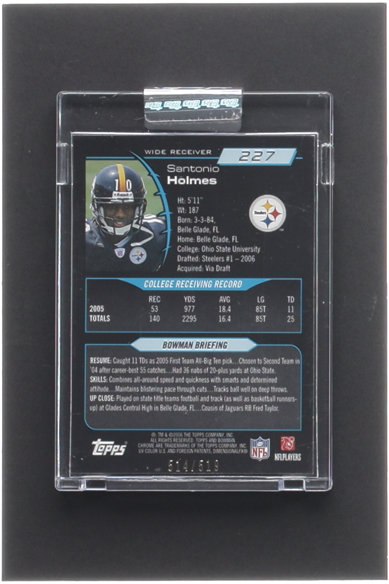 Santonio Holmes 2006 Bowman Chrome Uncirculated Rookies #227 #514/519 RC