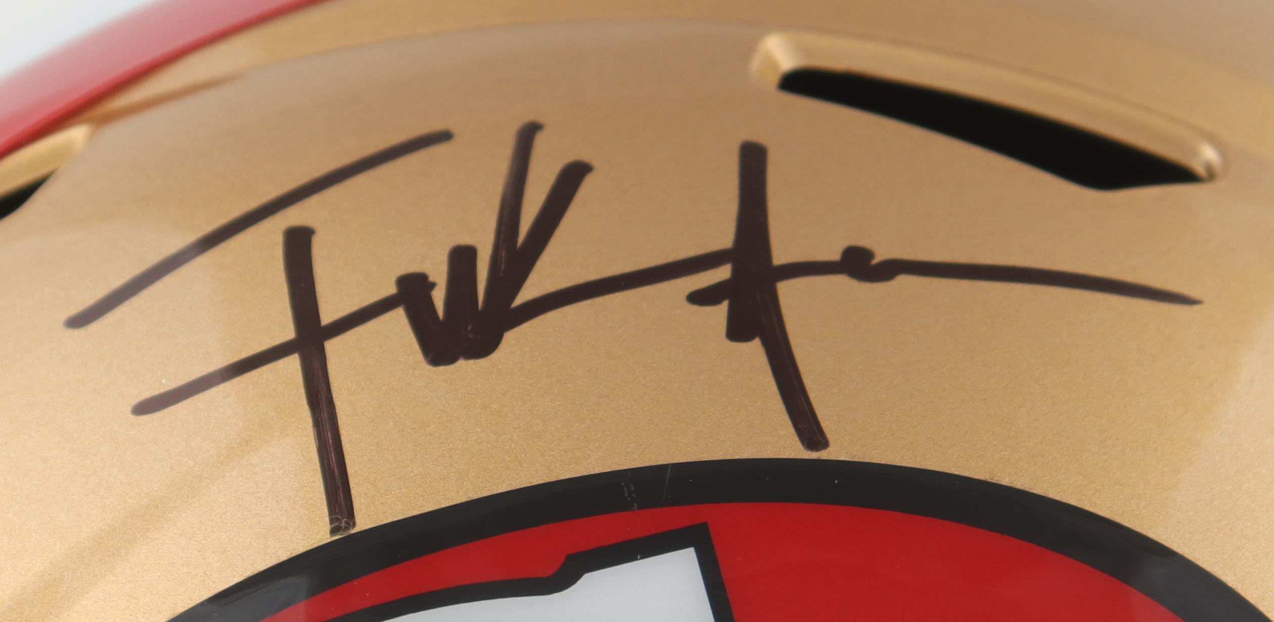 Riddell San Francisco 49ers full-size Replica speed helmet. Hand-signed by Frank Gore.