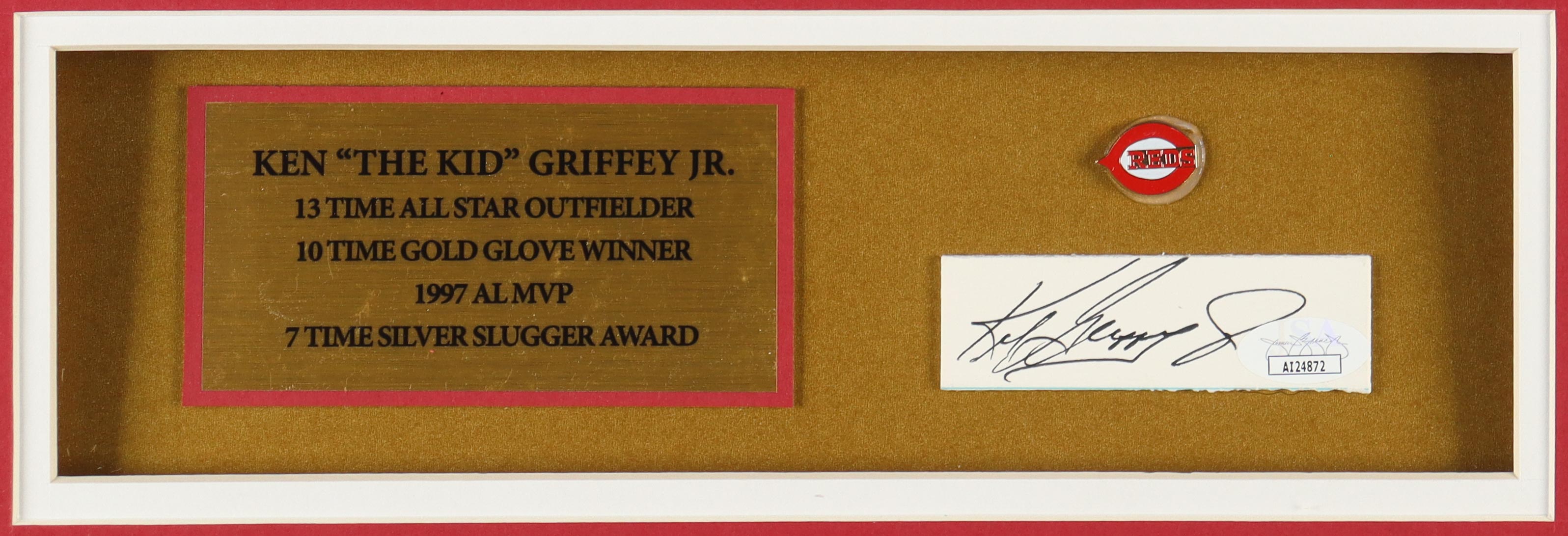 Ken Griffey Jr Signed Custom Framed Cut Display With Jersey & Team Logo Pin (JSA)