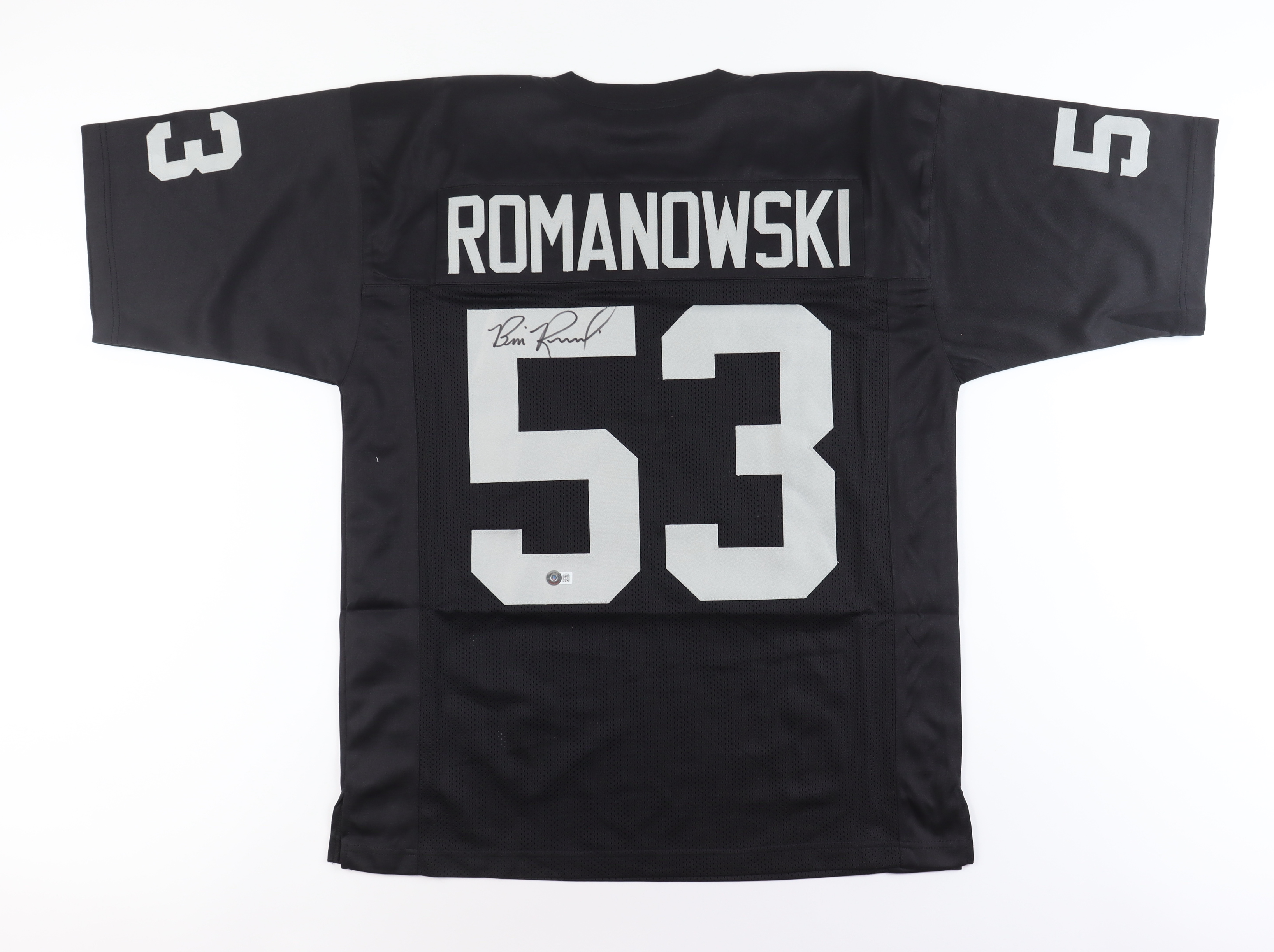Custom jersey with everything sewn on, size XL. Hand-signed by Bill Romanowski.