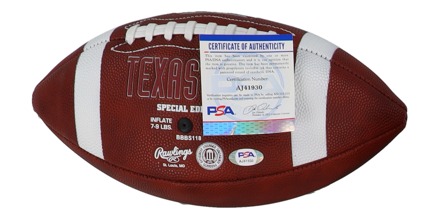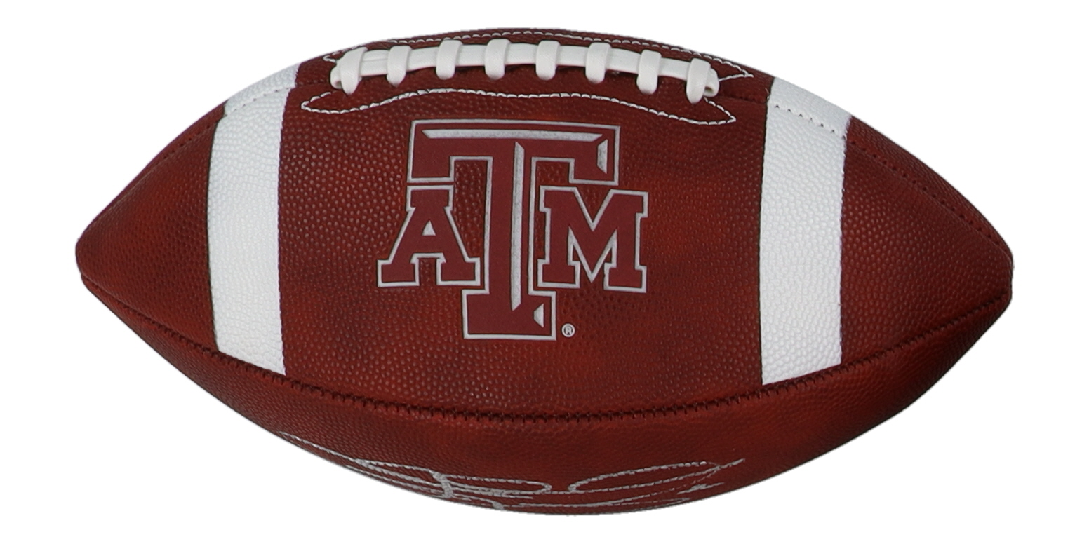 Texas A&M Aggies logo football has been hand-signed and inscribed by Johnny Manziel. Please note, the football does not hold air.