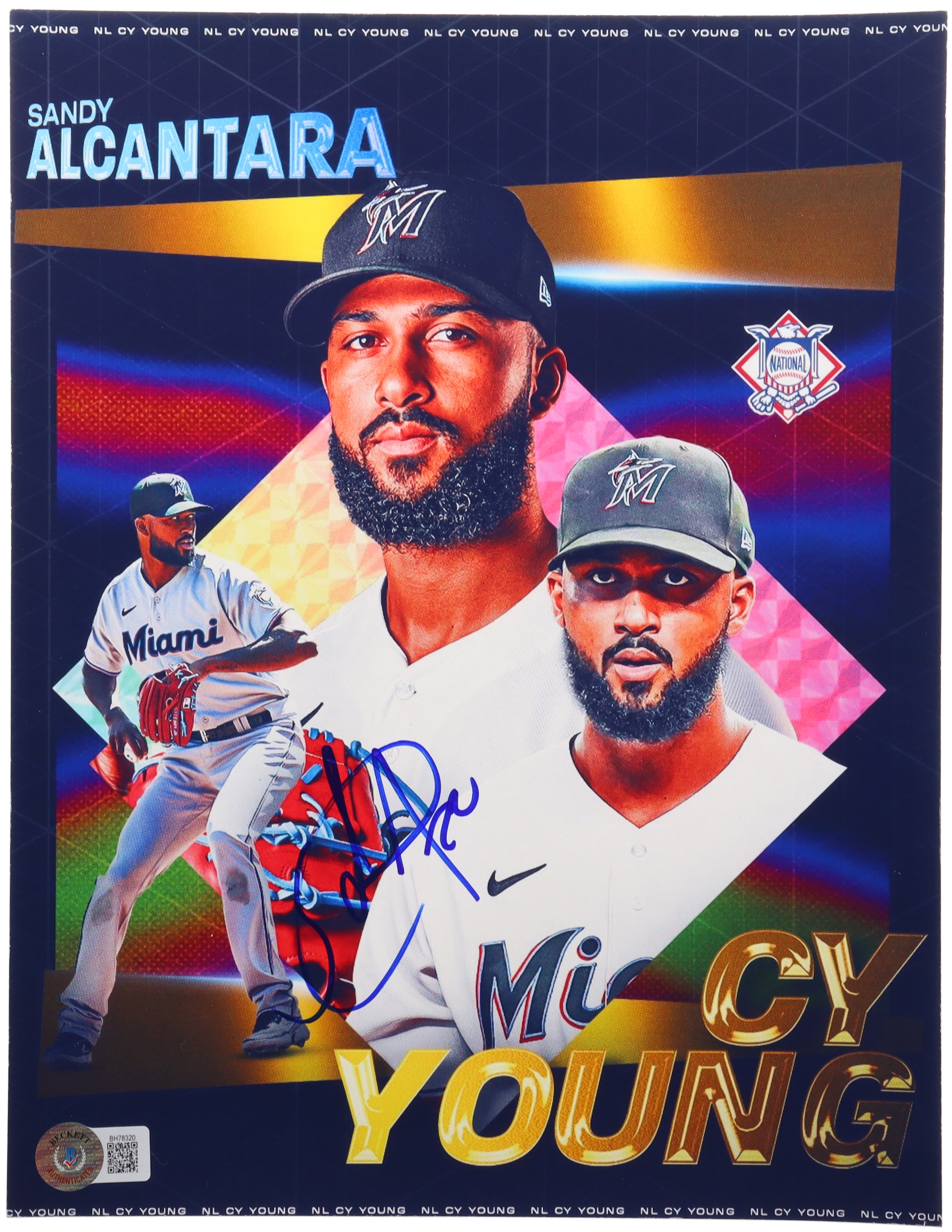 Photo measures 8" x 10" in size. Hand-signed by Sandy Alcantara (Miami Marlins).