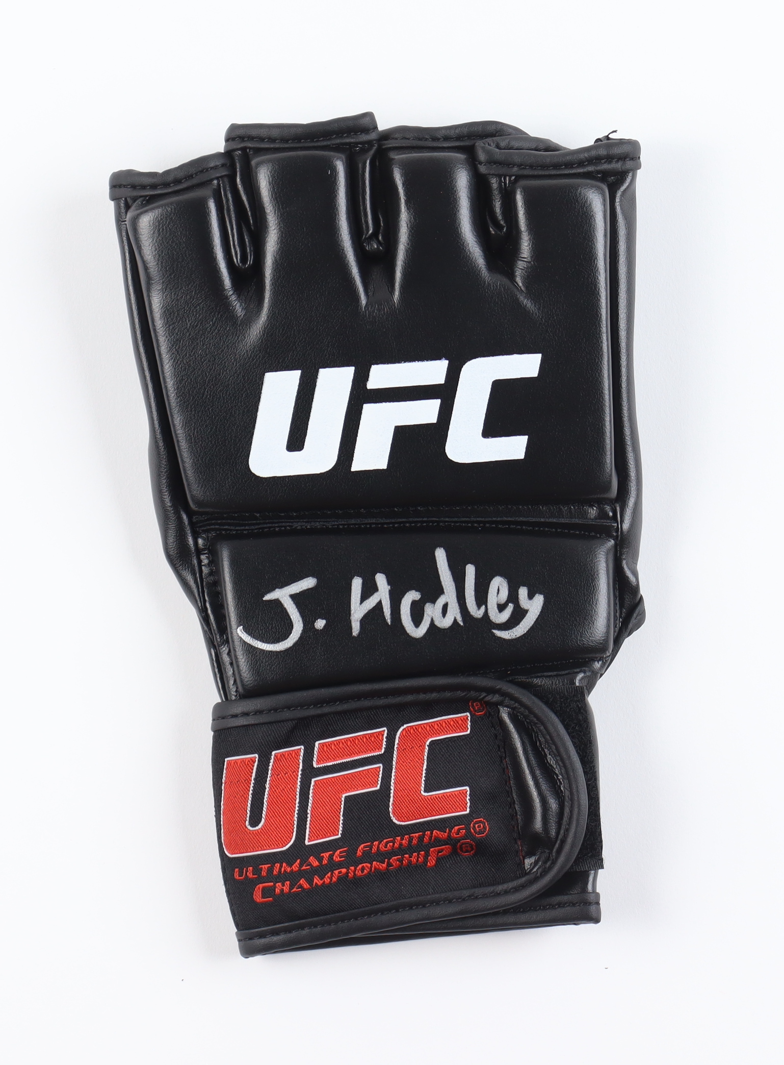 UFC glove is hand-signed by UFC flyweight, Jake Hadley.