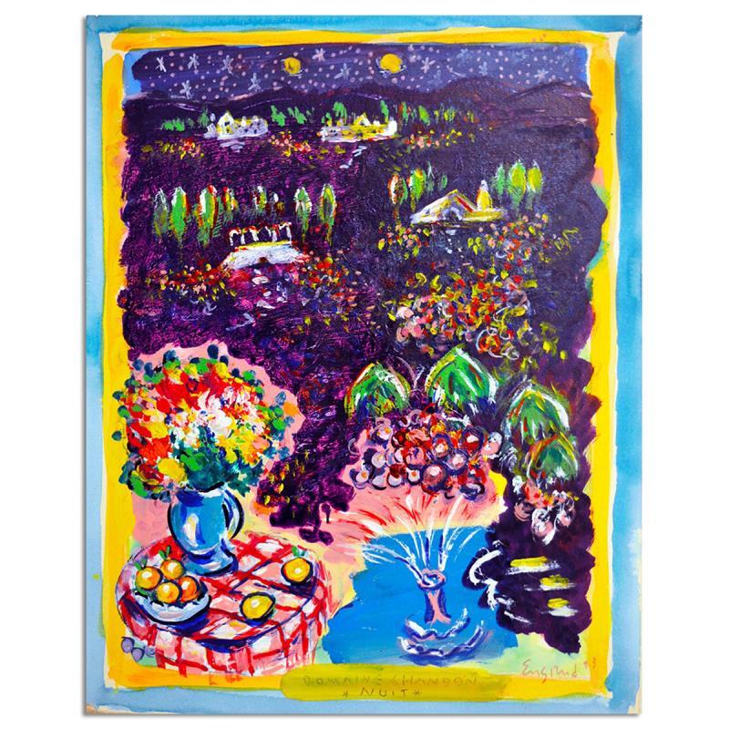 Wayne Ensrud Signed "Domaine Chandon In Napa At Night" 14x11 Original Mixed Media on Board (PA)