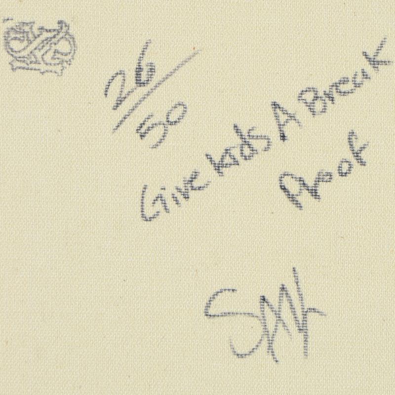 "Dollar Sign" is a limited edition hand pulled silkscreen on canvas by Andy Warhol protege Steve Kaufman (1960-2010). This piece is numbered 26/50 and hand signed inverso. Includes Certificate of authenticity. As is common with Kaufman's works, this piece may have perceived minor flaws, but is in overall good condition. Measures approx. 24" x 24" (image). Please note: there is minor smudging on the bottom right corner that may be concealed when stretched and framed.