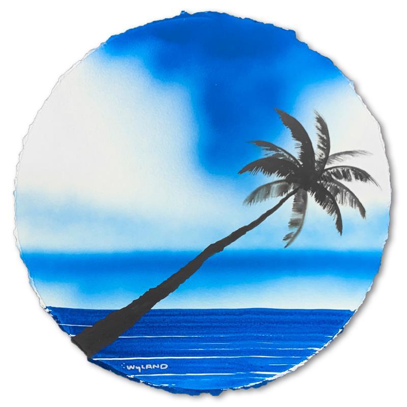 "Palm Trees" is an original painting, watercolor on deckle edge paper by Wyland. Hand signed by the artist, the piece comes custom framed and with a letter of authenticity. Measures approximately 30" x 30" (framed), 19.5" x 19.5" (image).