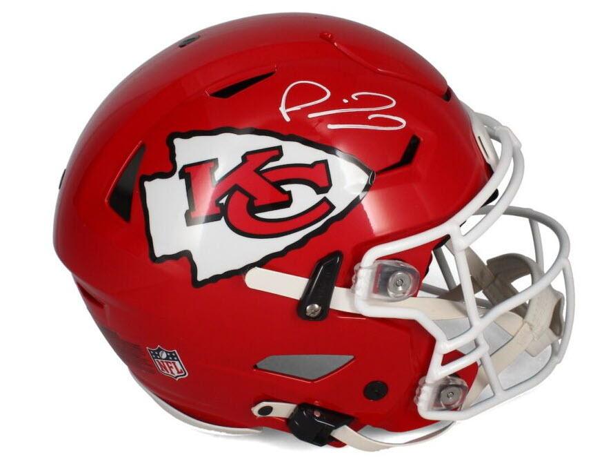 Riddell Kansas City Chiefs Full-Size Authentic On-Field SpeedFlex Helmet has been hand-signed by Patrick Mahomes.
