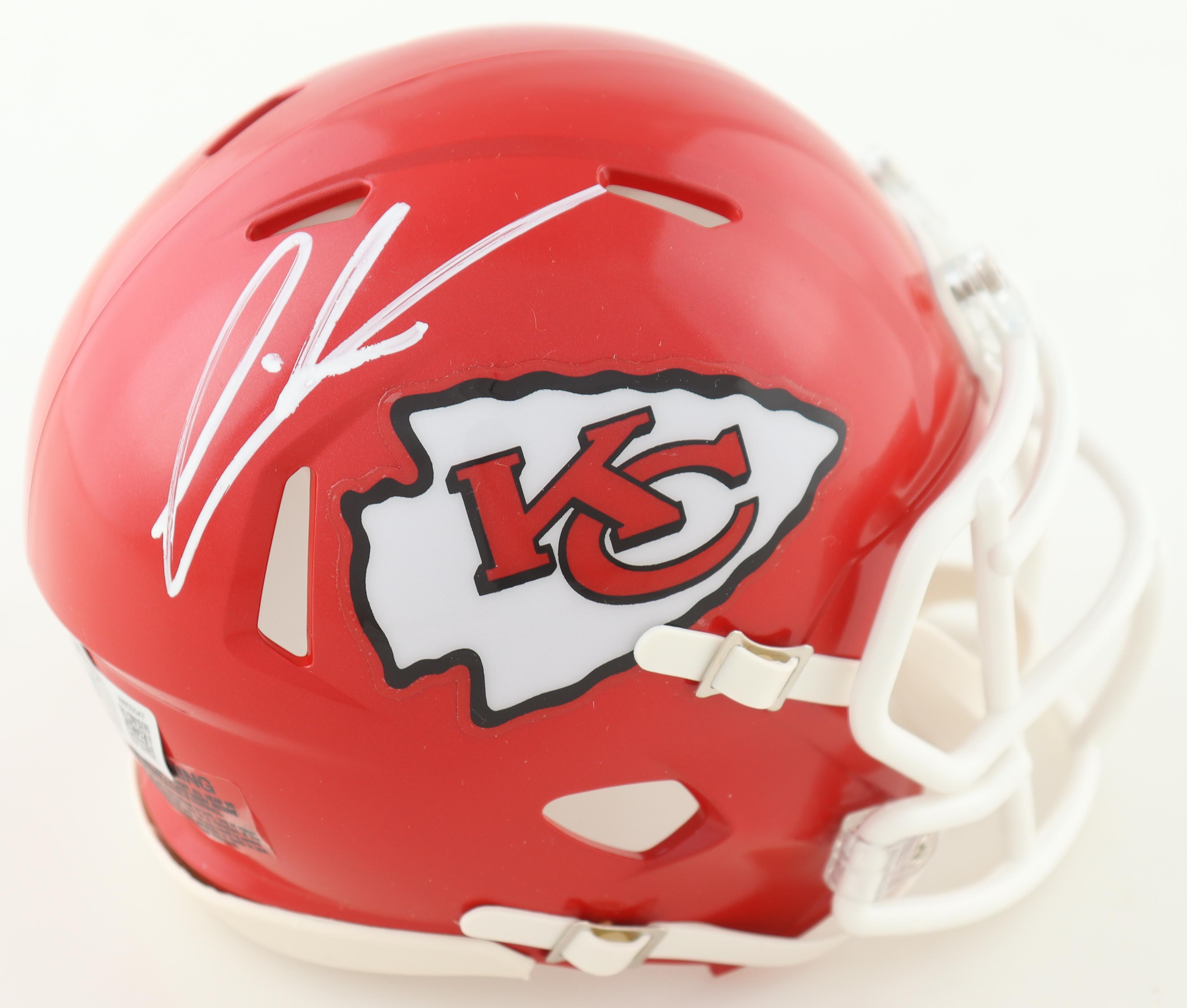 Riddell Kansas City Chiefs Speed mini helmet has been hand-signed by Felix Anudike-Ozumah.