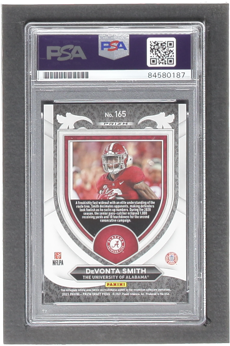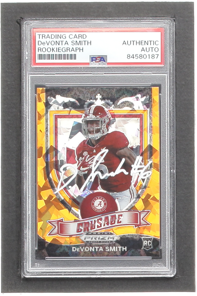 DeVonta Smith Signed 2021 Panini Prizm Draft Picks Prizms Orange Ice #165 C RC (PSA)