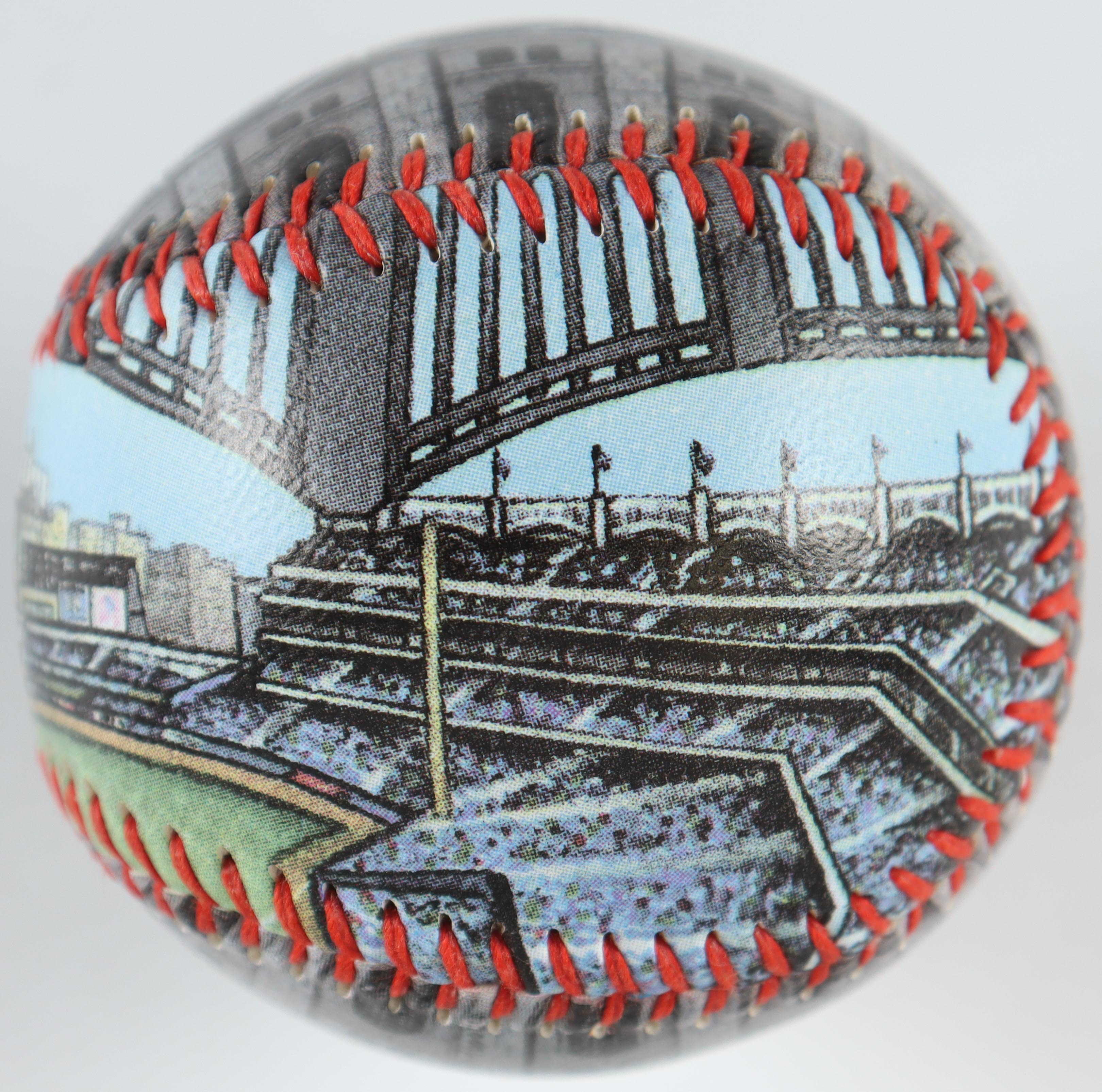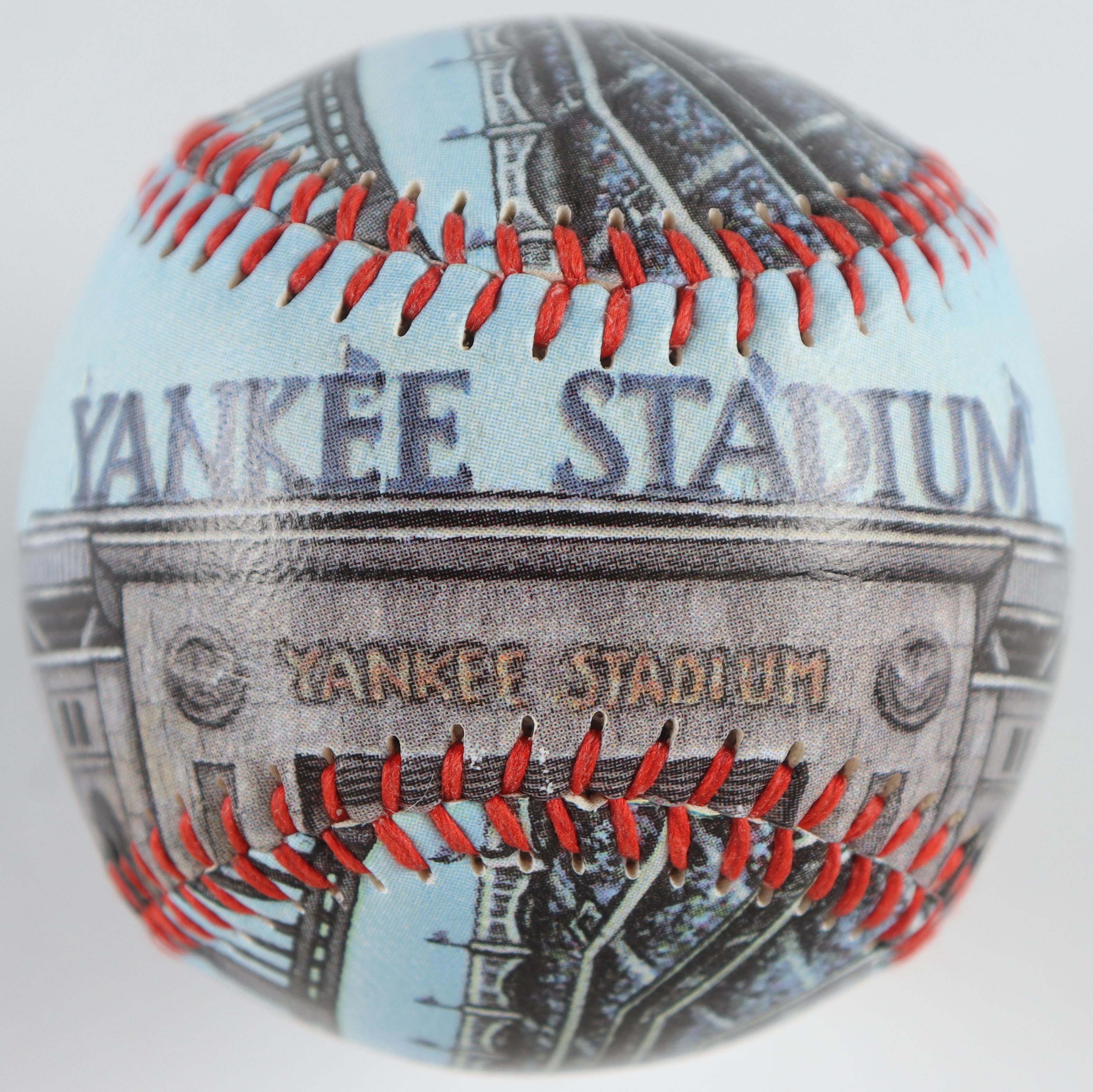 Photo-baseball featuring New York Yankees "Old Yankee Stadium". Includes wood display case with New York Yankees pin.