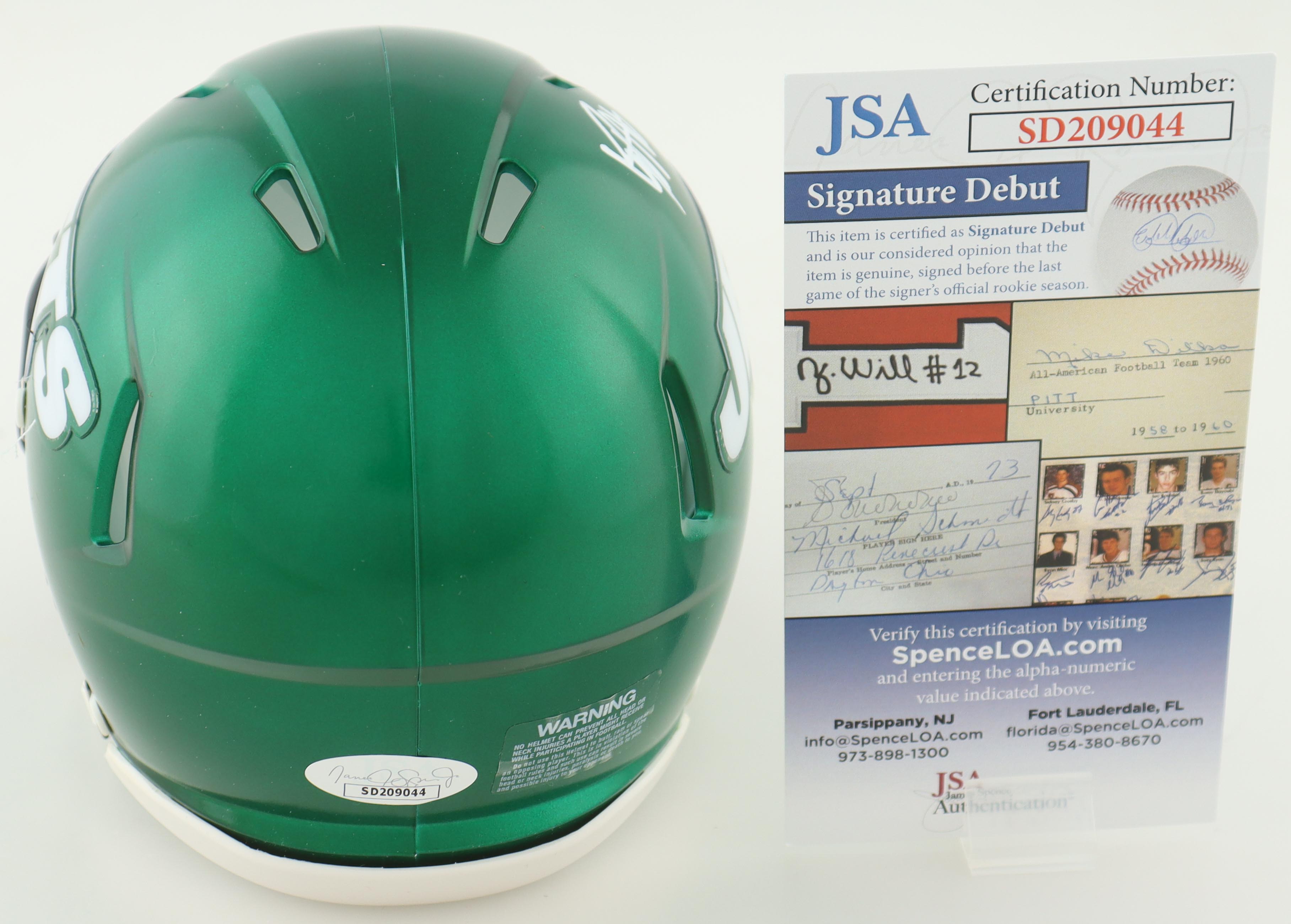 Will McDonald Signed Jets Speed Mini Helmet (JSA)