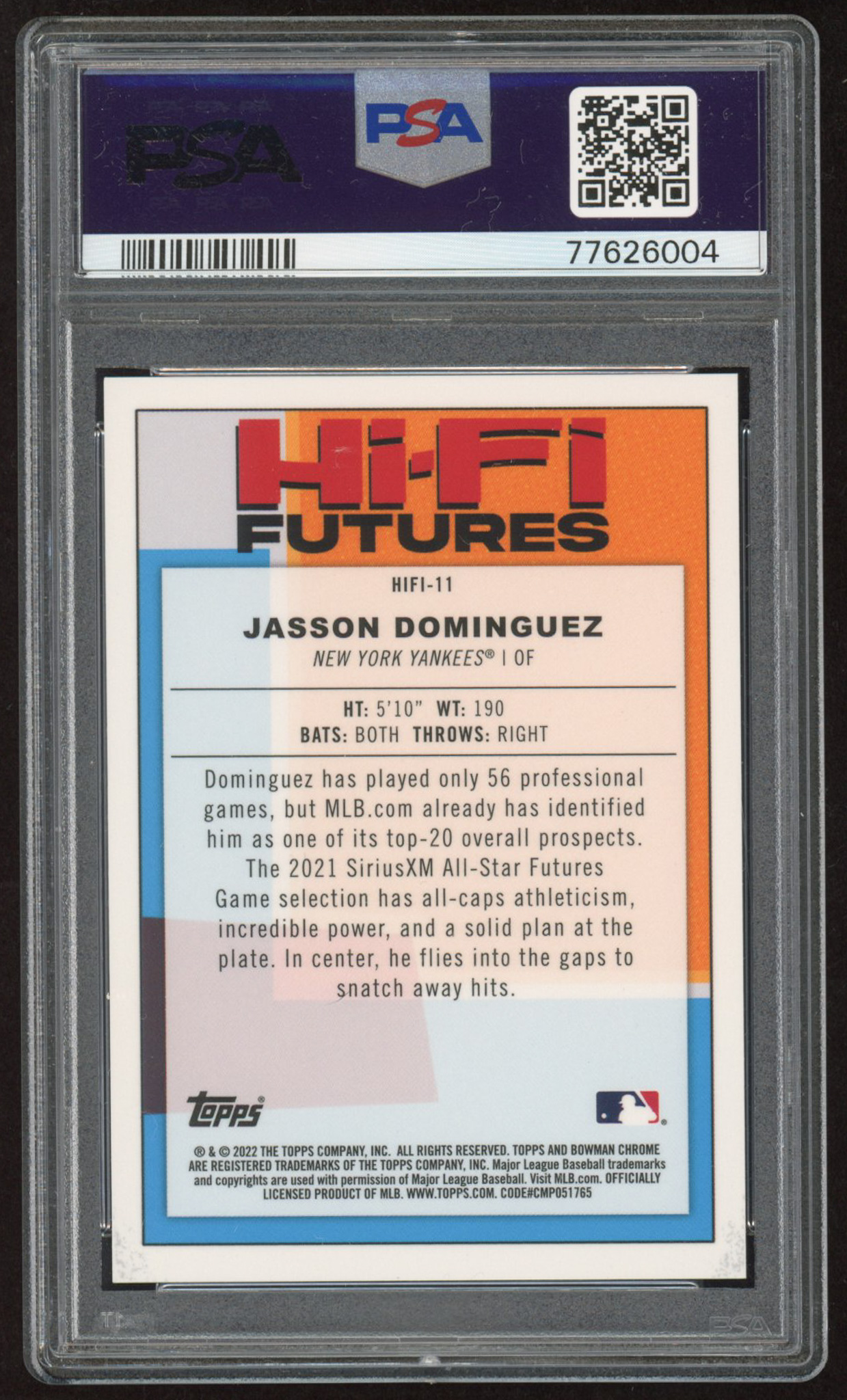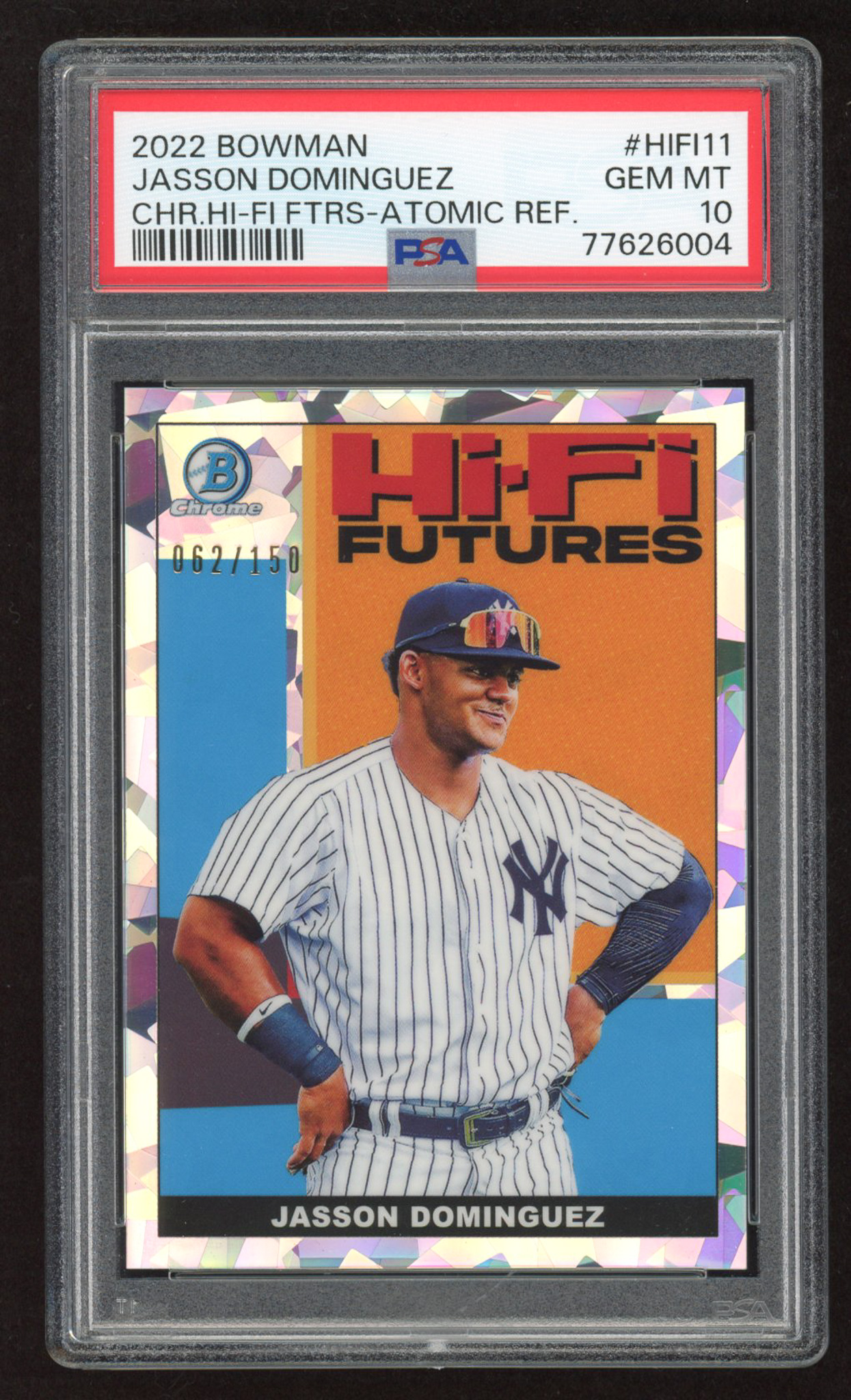 Jasson Dominguez 2022 Bowman Chrome Hi-Fi Futures Atomic Refractors #HIFI11 #062/150 RC (PSA 10)
