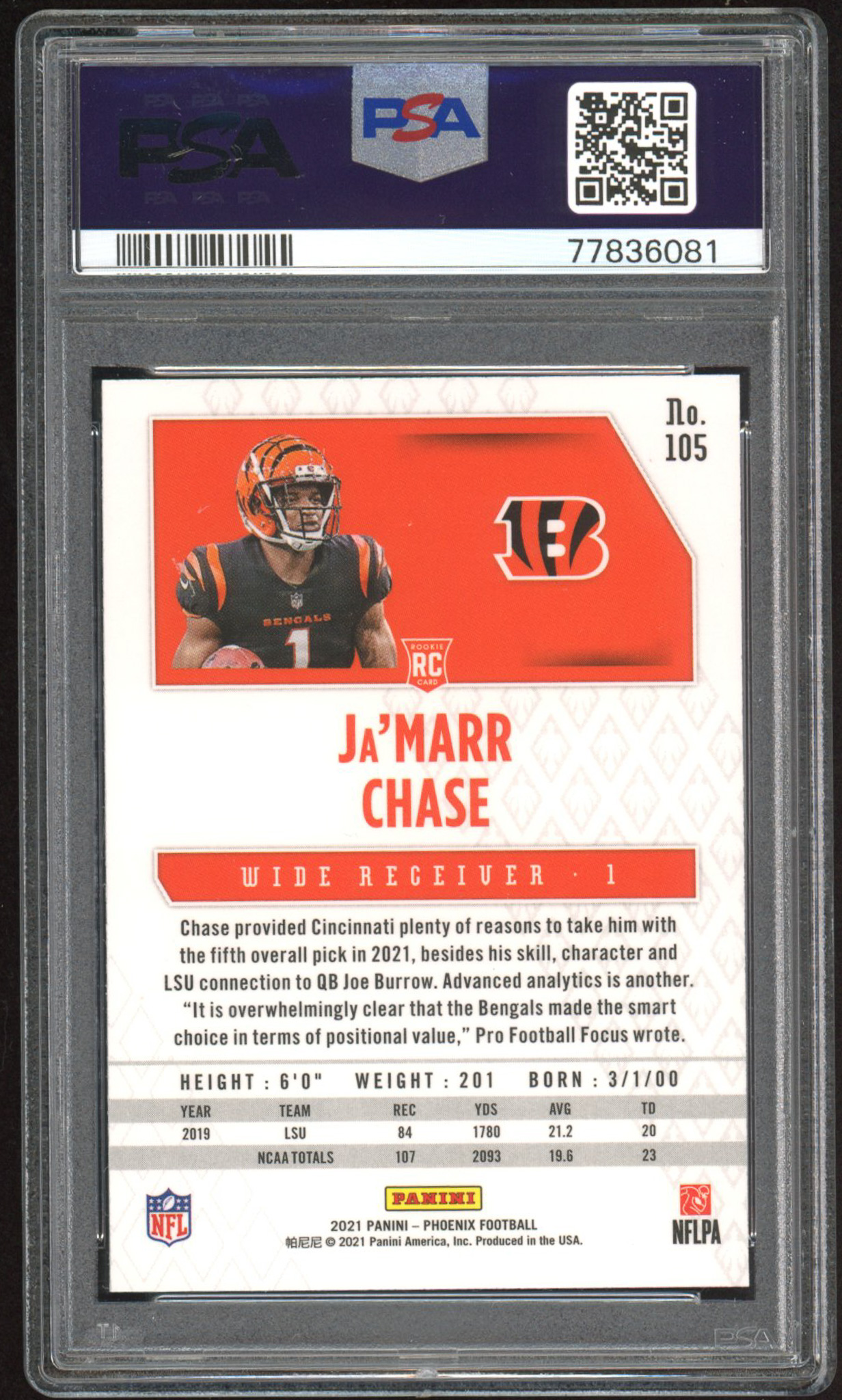 Ja'Marr Chase 2021 Panini Phoenix Fire Burst #105 RC (PSA 10)