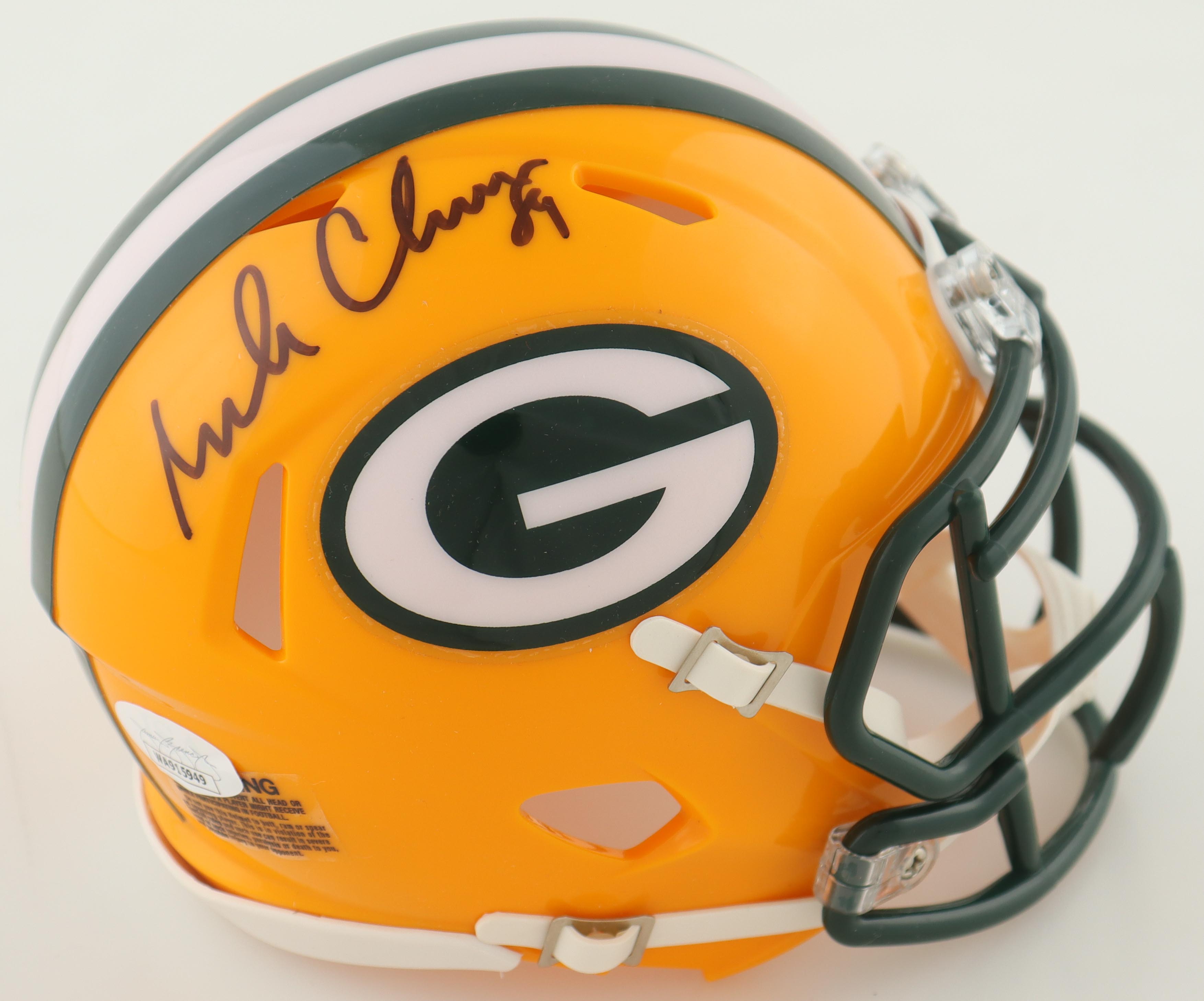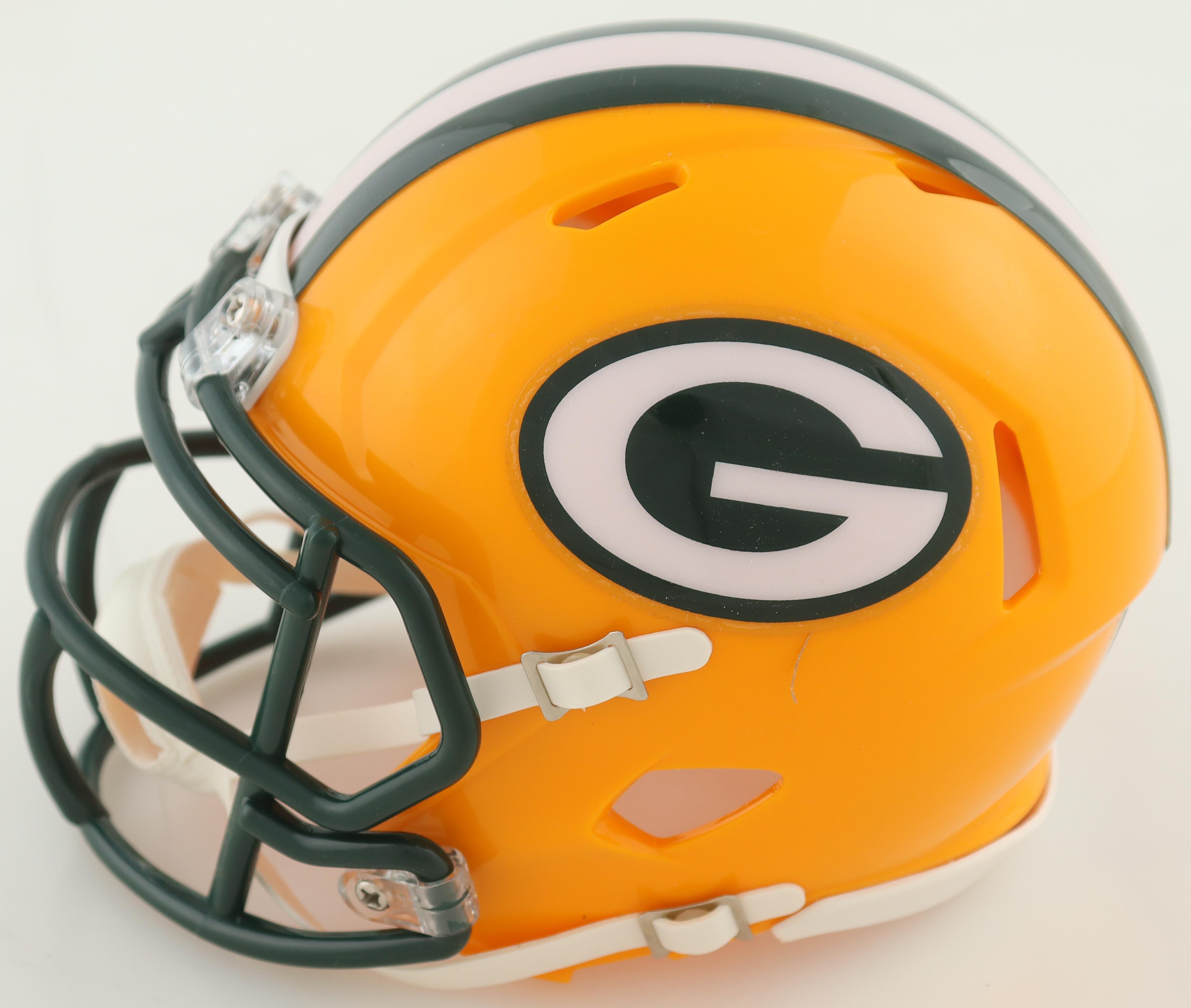 Riddell Green Bay Packers Speed mini helmet. Hand-signed by Mark Chmura.