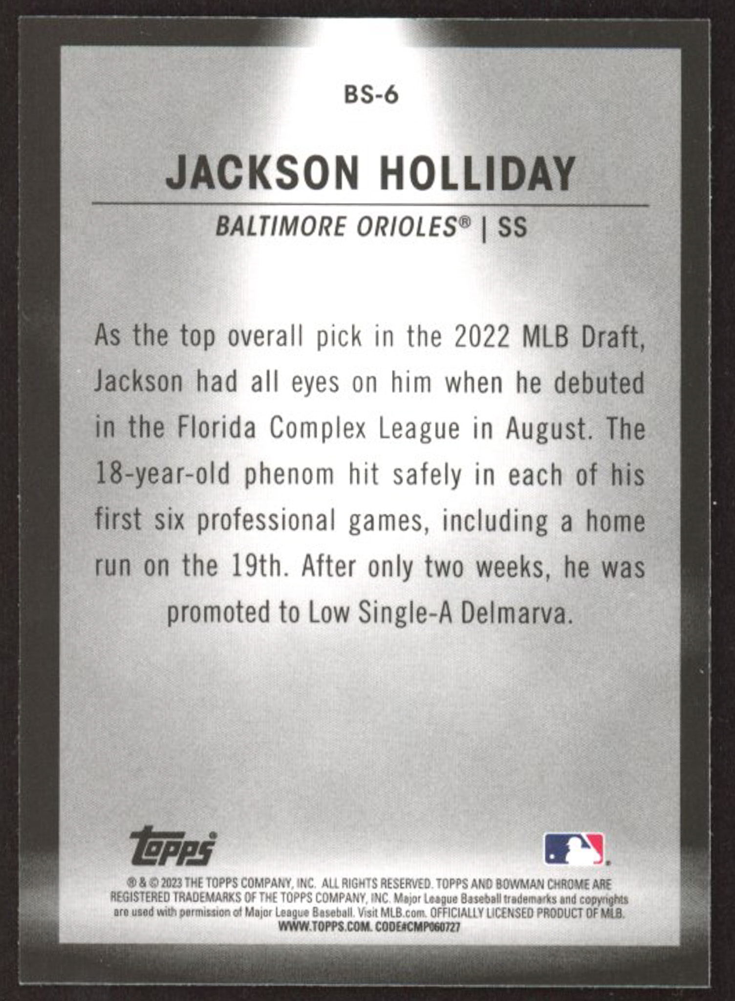 Jackson Holliday 2023 Bowman Chrome Bowman Spotlights #BS6 RC