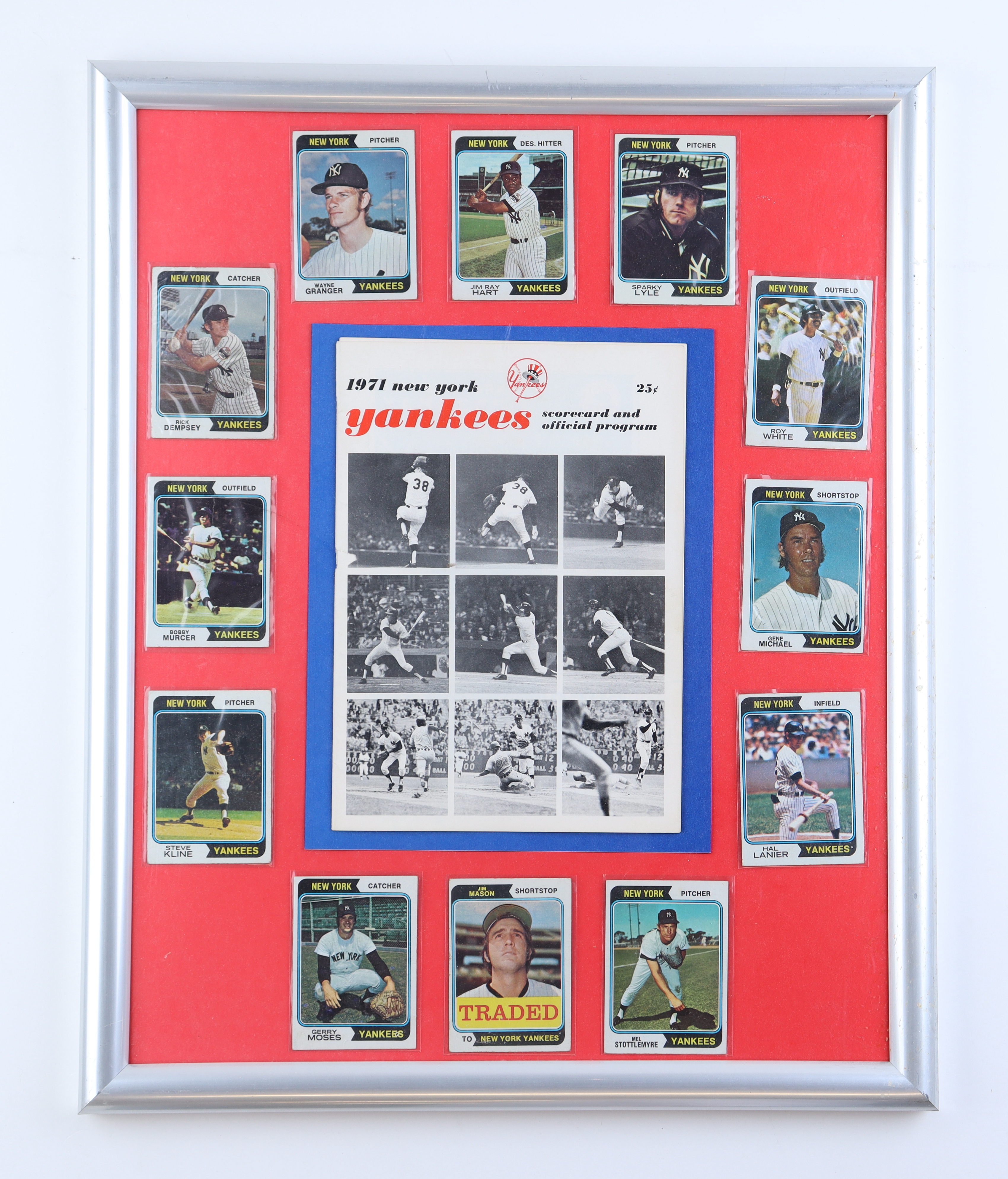 1971 Yankees Custom Framed Scorecard & Official Program Display With (12) Yankees Trading Cards