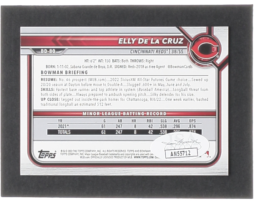Elly De La Cruz Signed 2022 Bowman Draft #BD80 RC (JSA)
