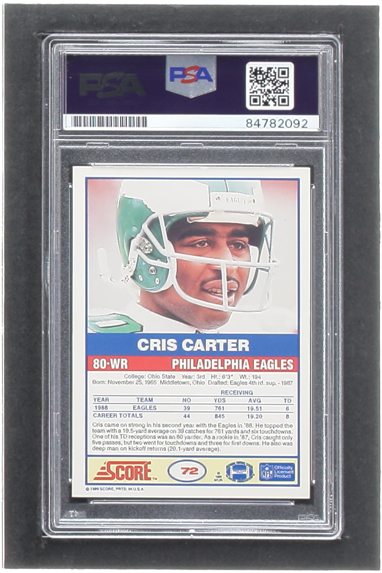 Cris Carter Signed 1989 Score #72 RC (PSA)