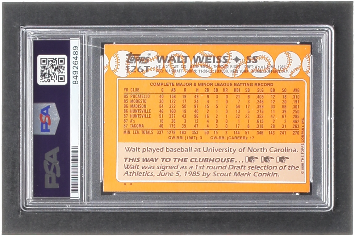 Walt Weiss Signed 1988 Topps Traded #126T XRC Inscribed "88 AL ROY" (PSA)