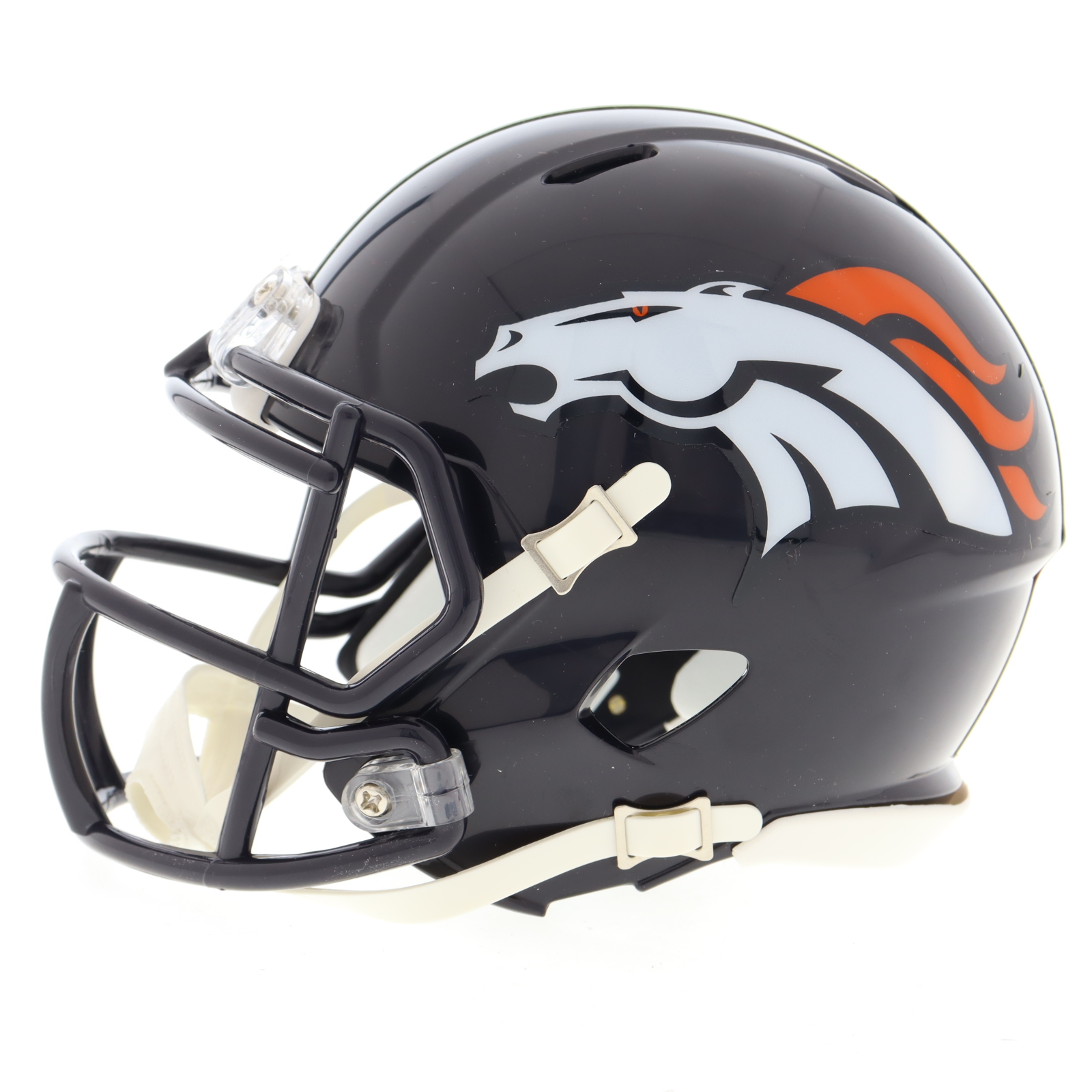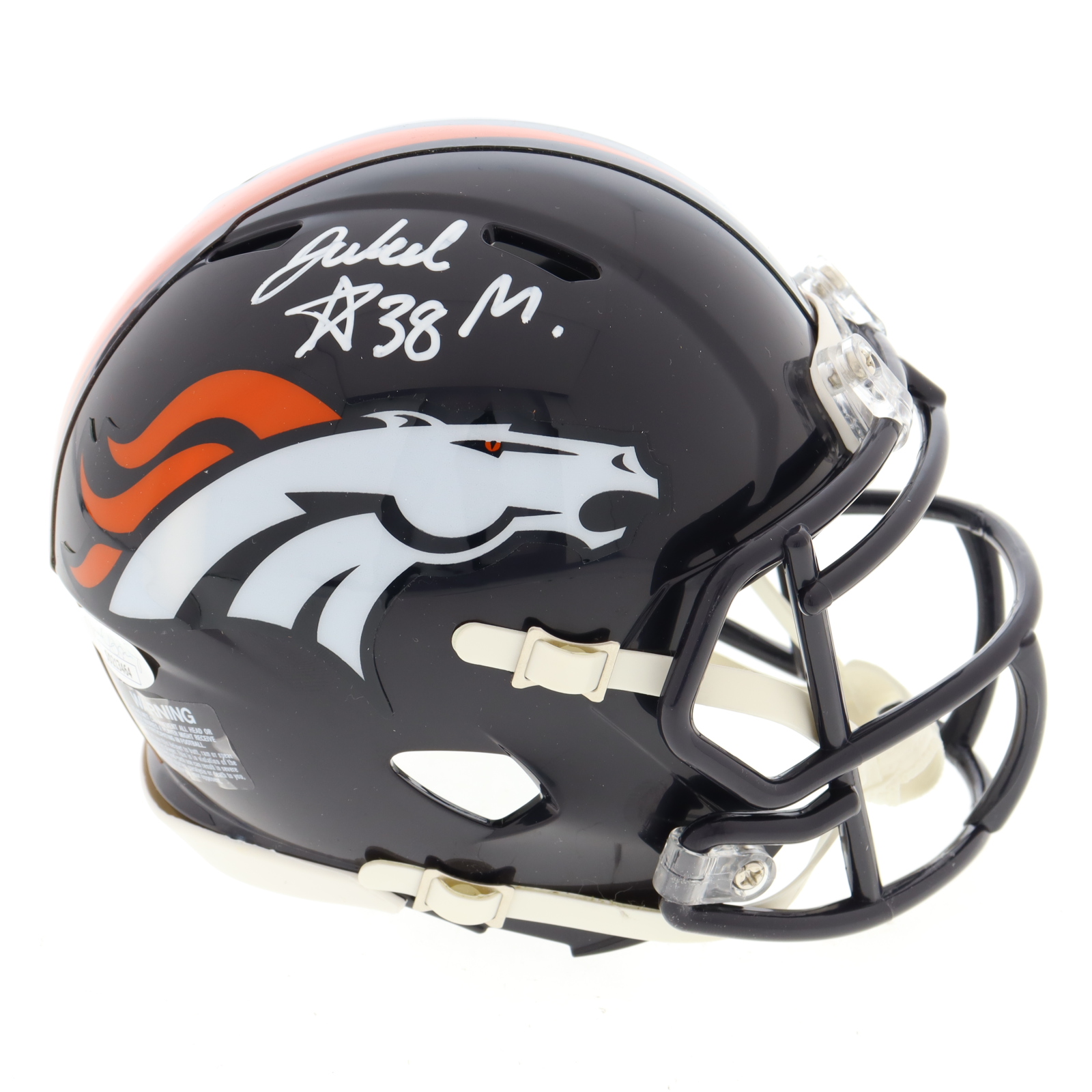 Riddell Denver Broncos Speed mini helmet. Hand-signed by Jaleel McLaughlin