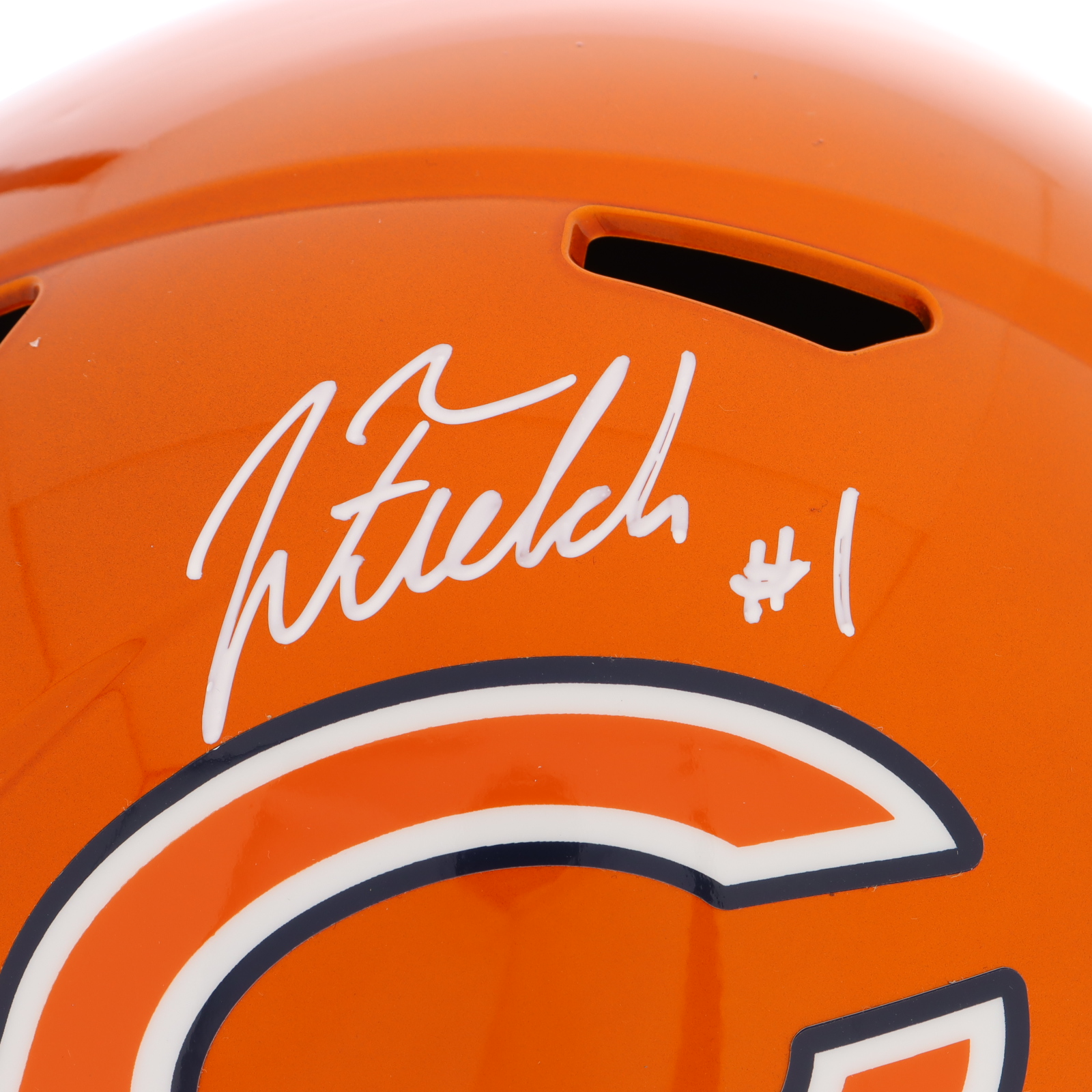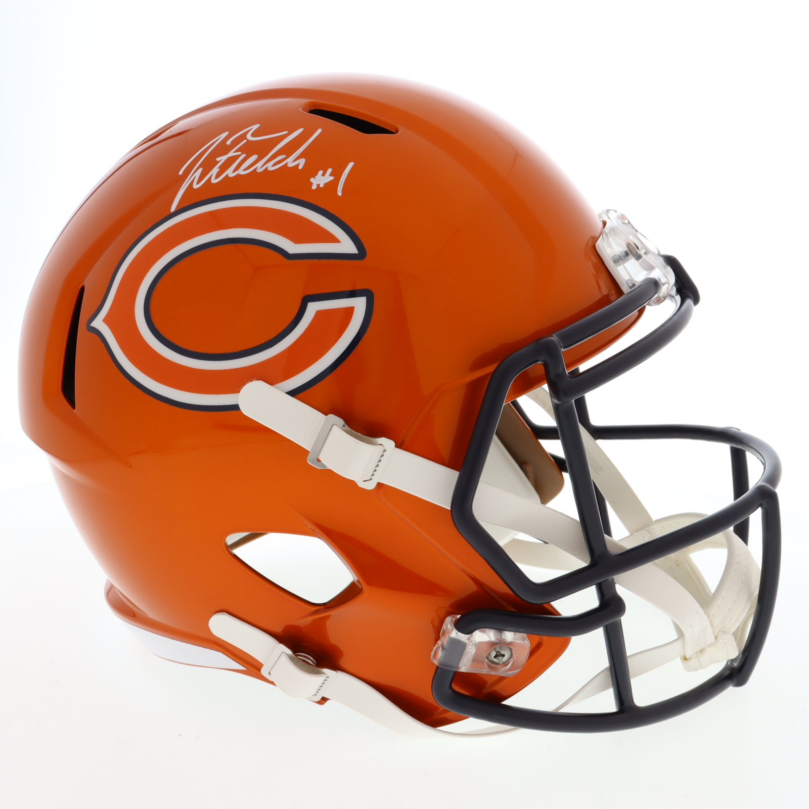 Riddell Chicago Bears full-size Flash Alternate Speed replica helmet has been hand-signed by Justin Fields.