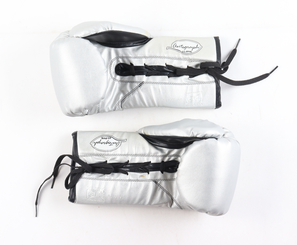 Set includes one pair of Cleto Reyes boxing gloves, one of which is hand-signed by Julio Cesar Chavez (HOF). Includes display cases as shown.