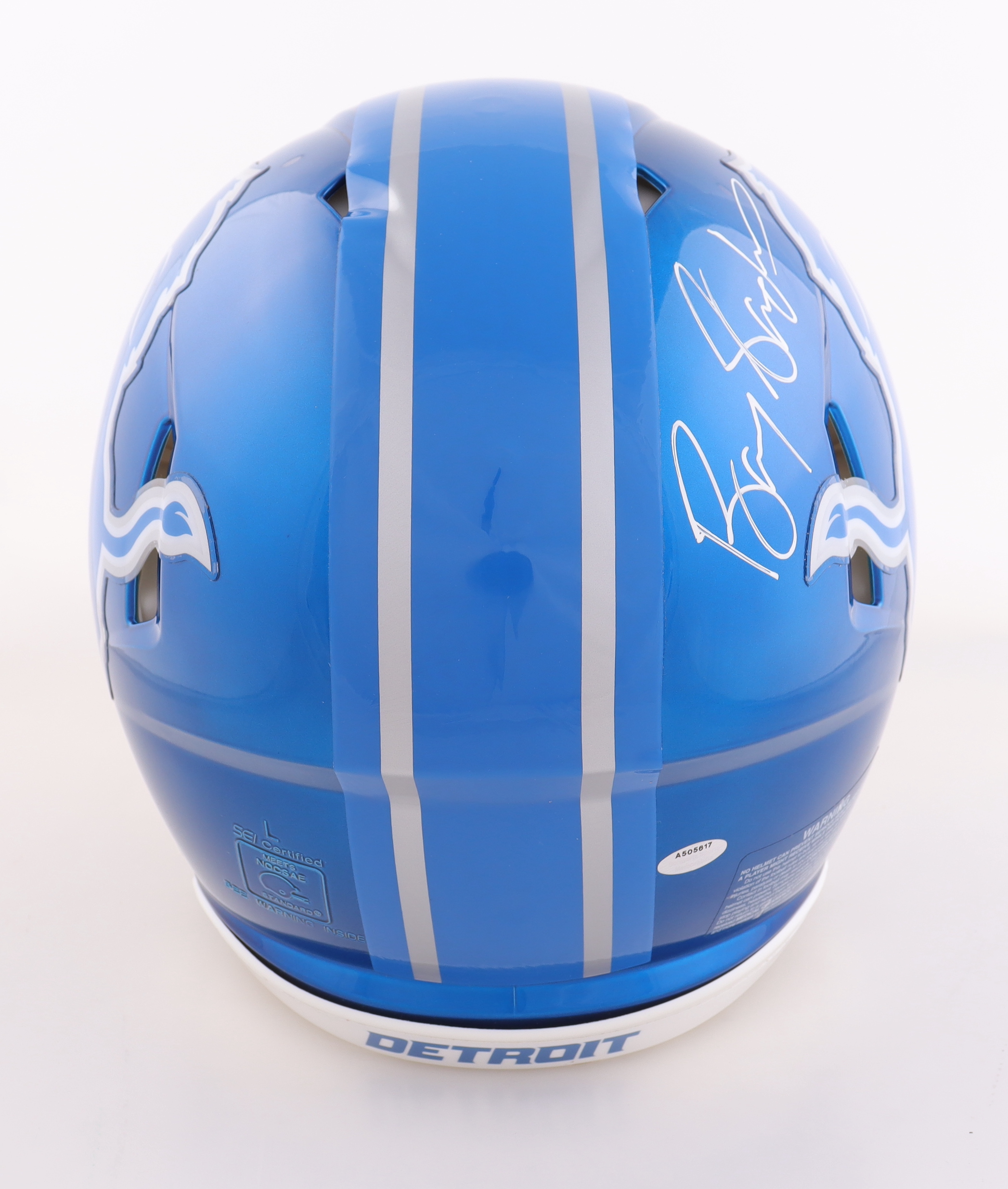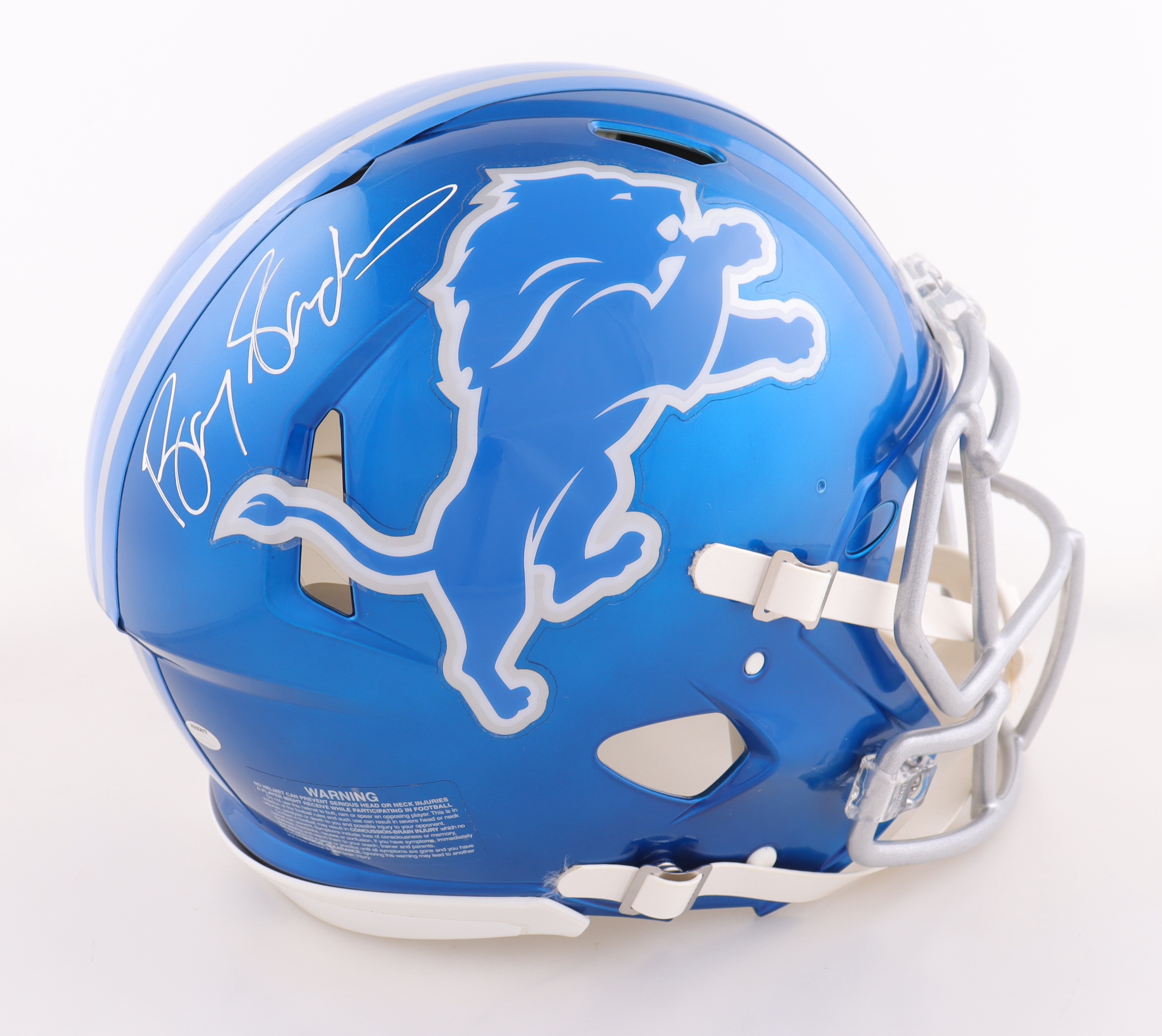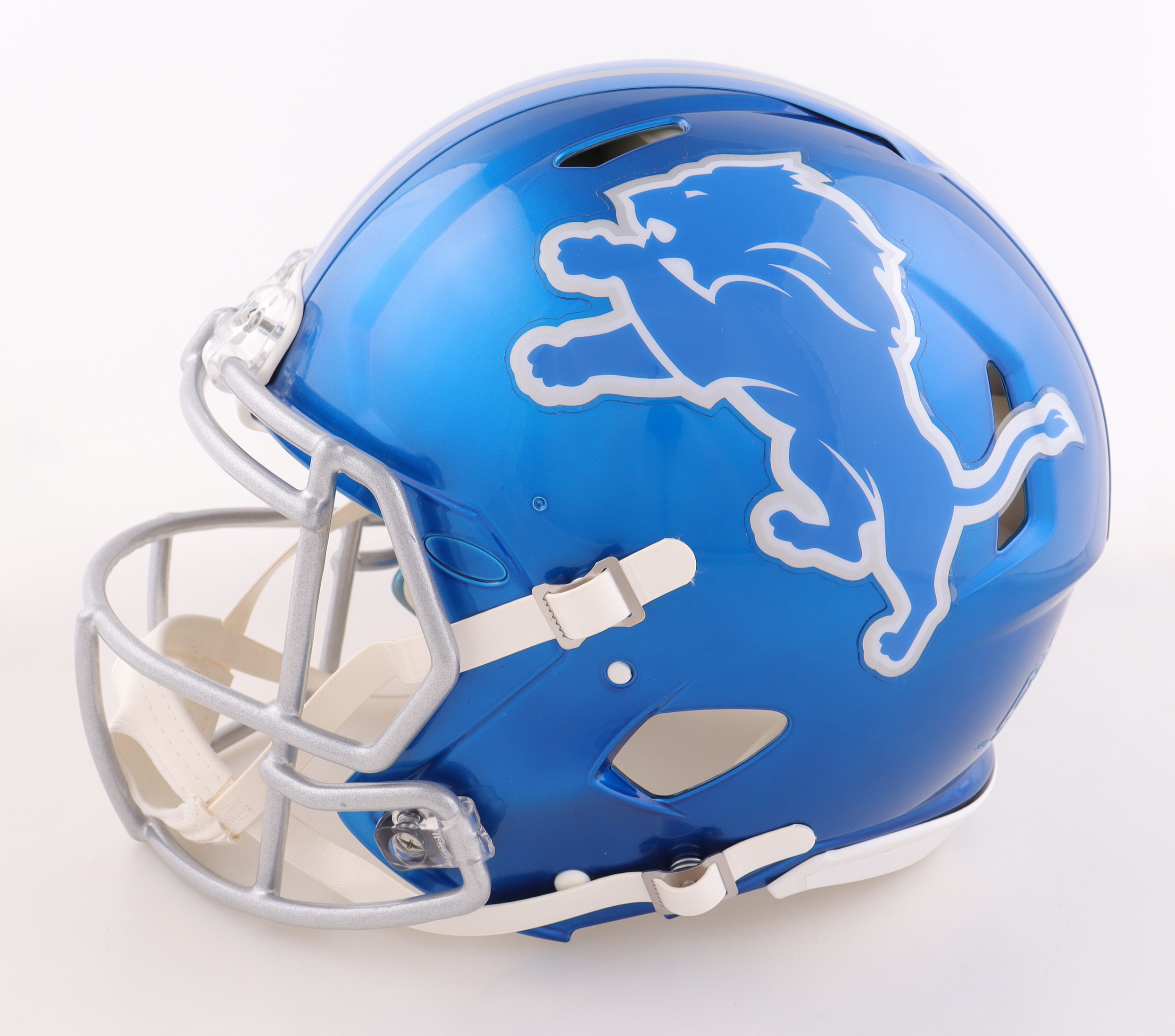 Riddell Detroit Lions full-size authentic on-field Flash Alternate Speed helmet. Hand-signed by Barry Sanders (HOF).