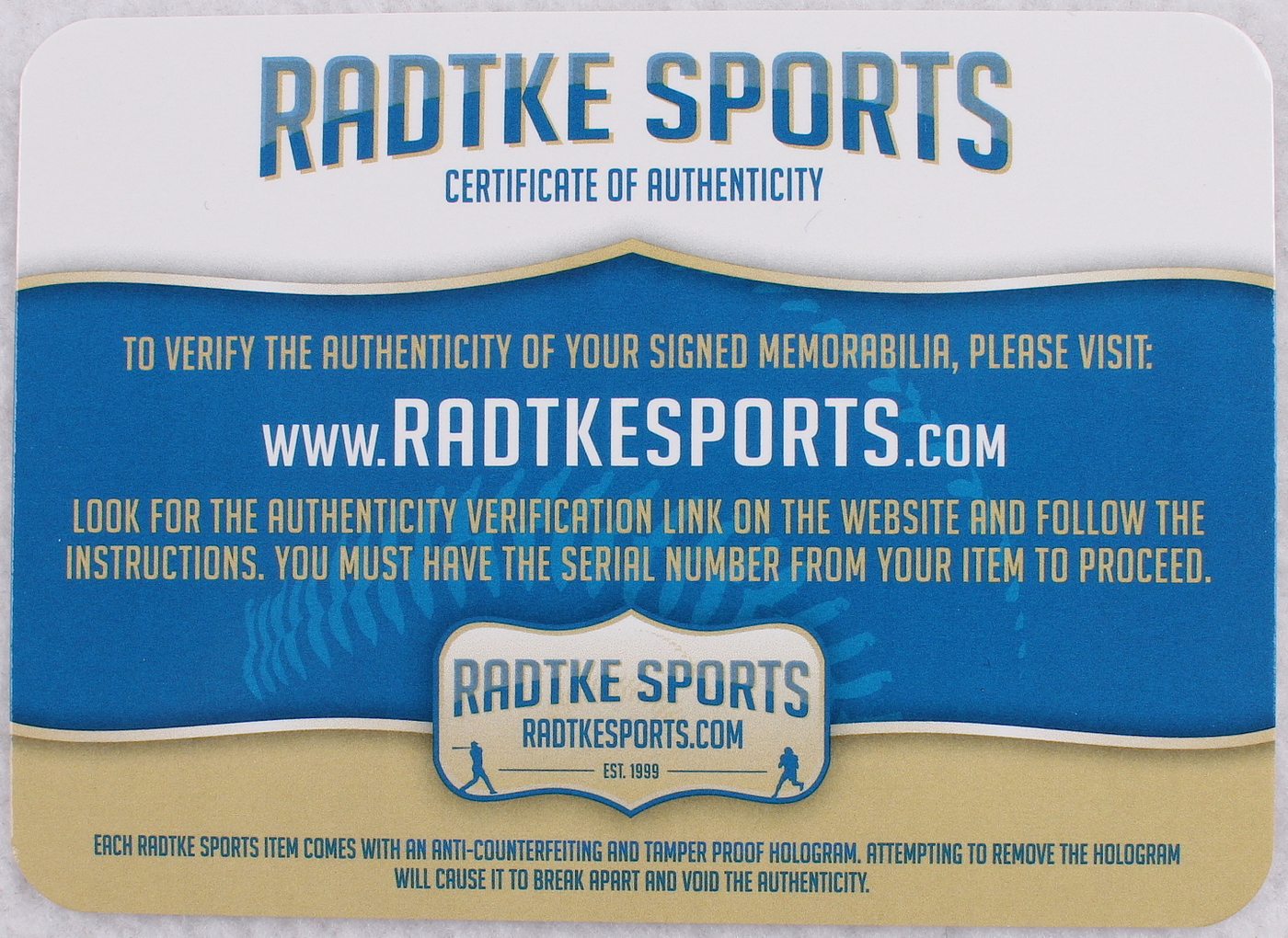 Authentication: Radtke COA & Fanatics Hologram