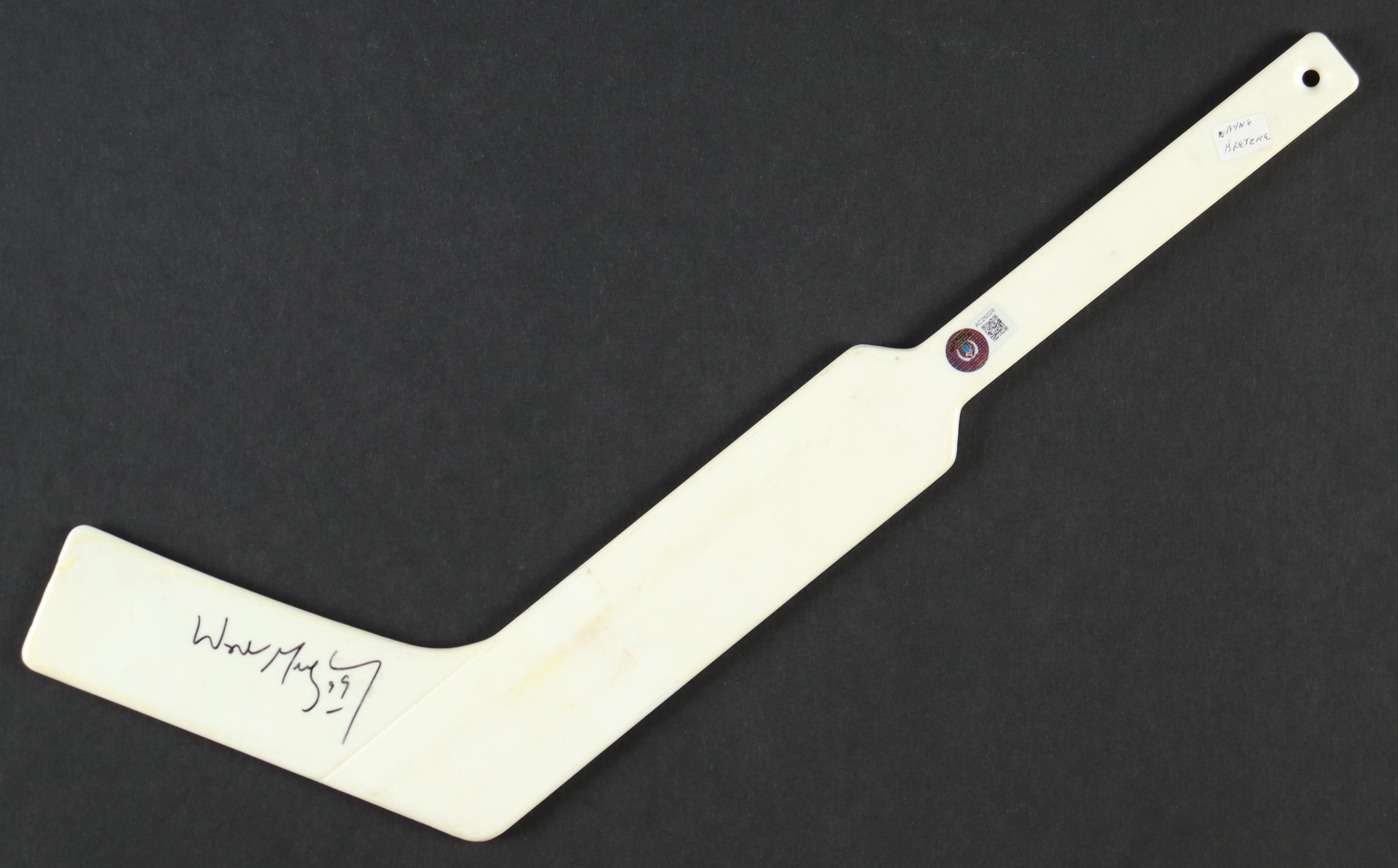 Mini hockey stick measures approximately 20" in size and has been hand-signed by Wayne Gretsky (New York Rangers, HOF). Please note, there is scuffing and staining on the stick. Refer to photos for condition of the hockey stick.