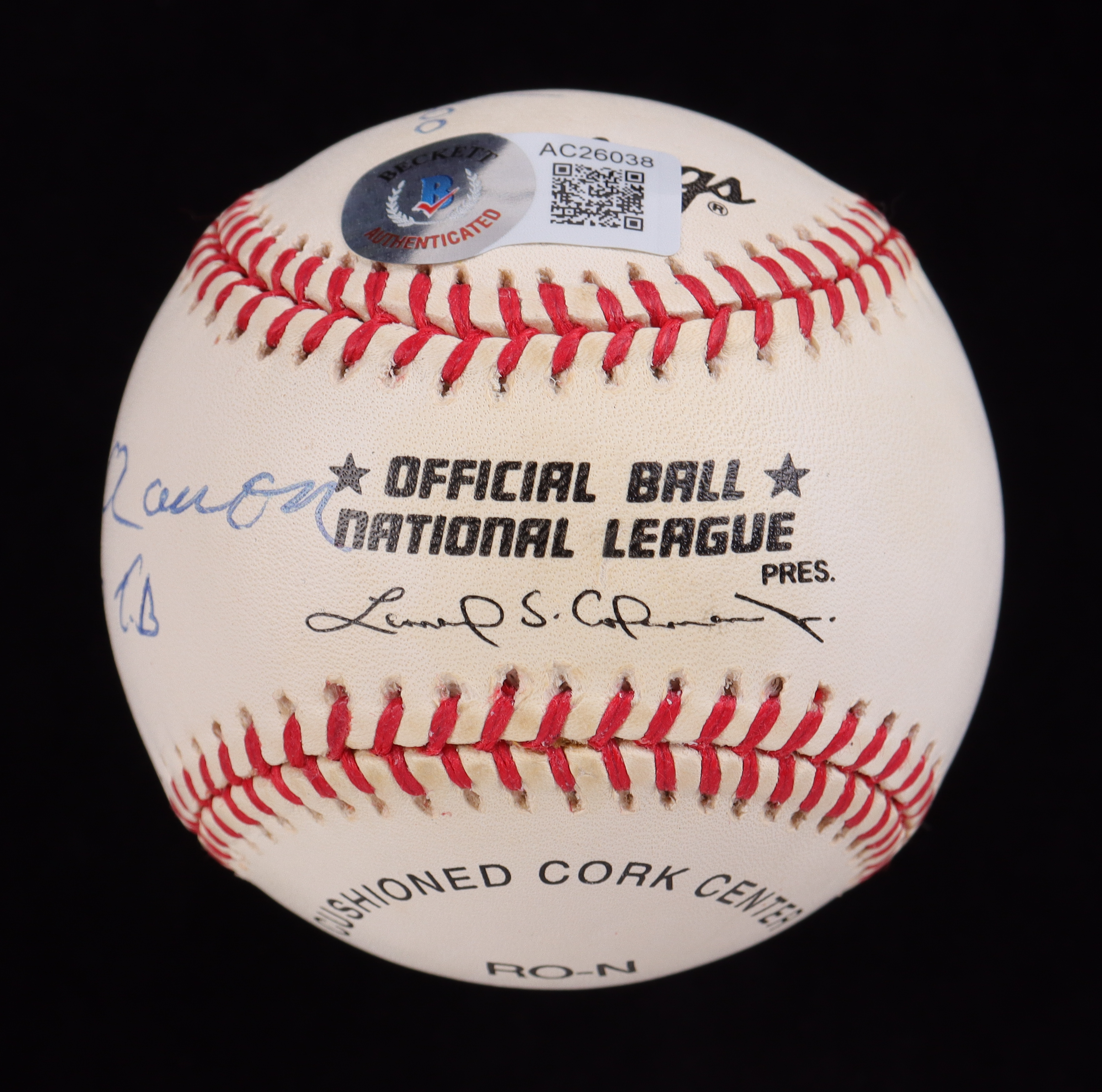 Rawlings Official National League baseball has been hand-signed and inscribed by: