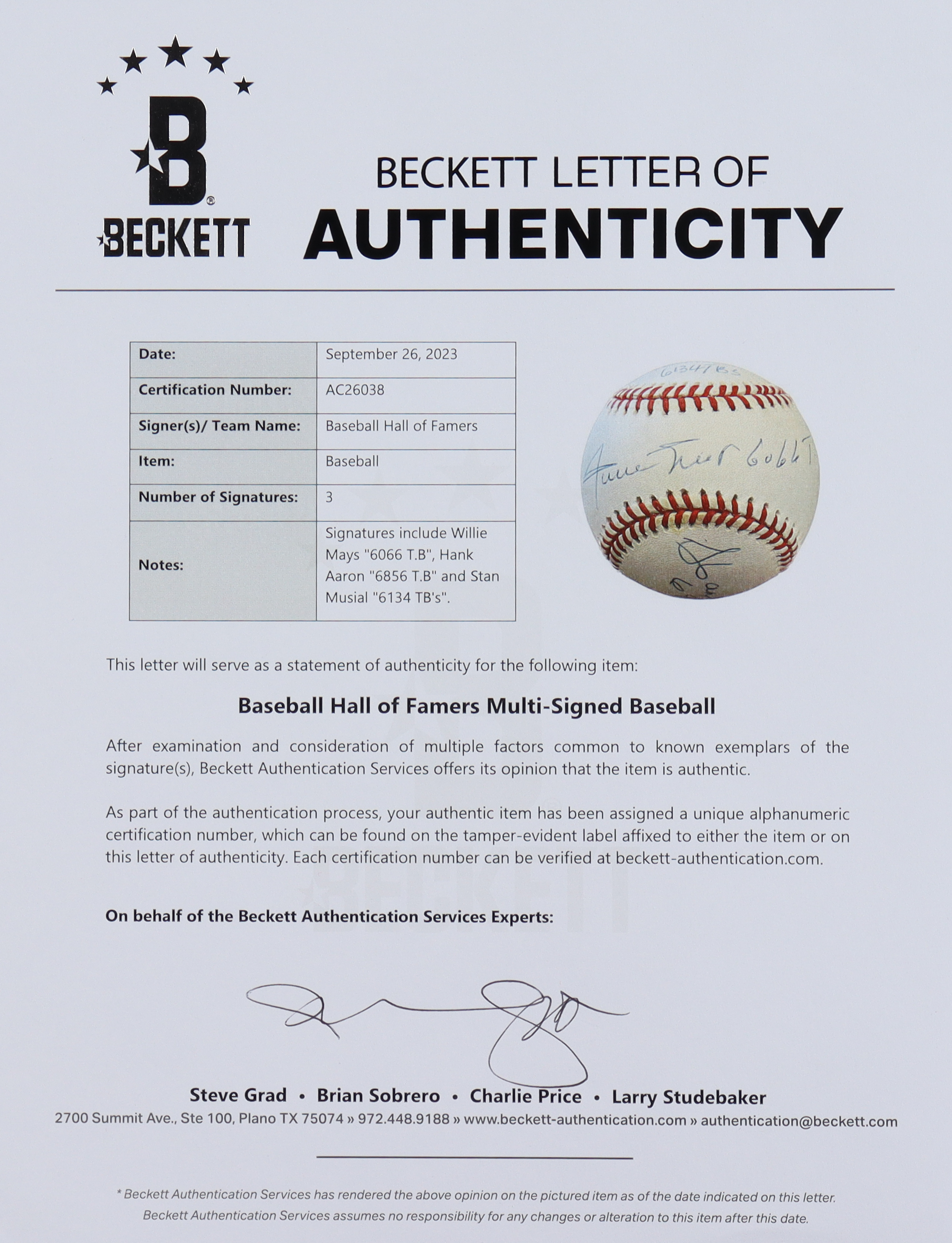 The autographs include an official Beckett Authentication Services hologram and matching LOA for authenticity purposes.
