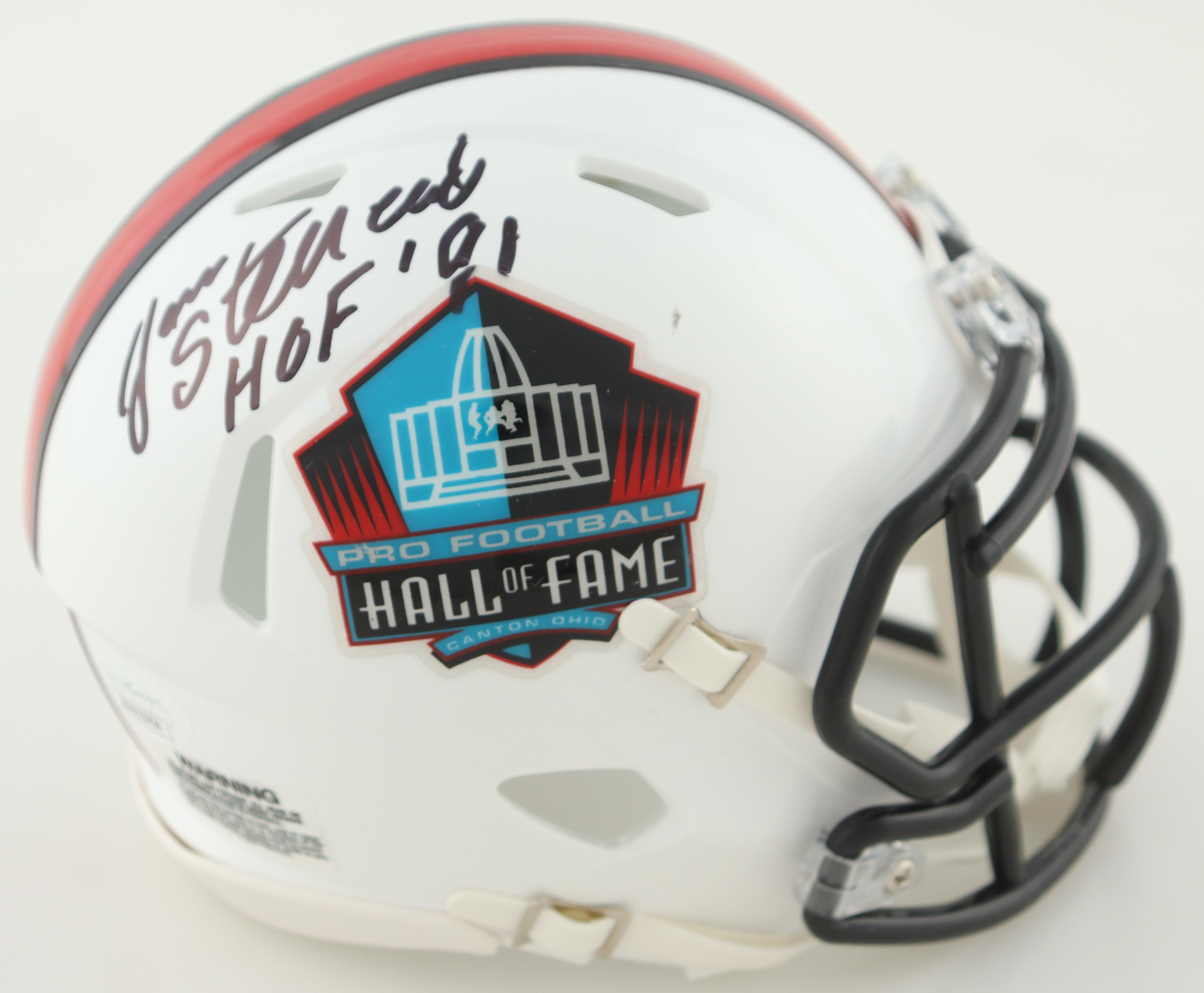 Jan Stenerud Signed Football Hall Of Fame Logo Speed Mini Helmet Inscribed "HOF '91" (JSA)