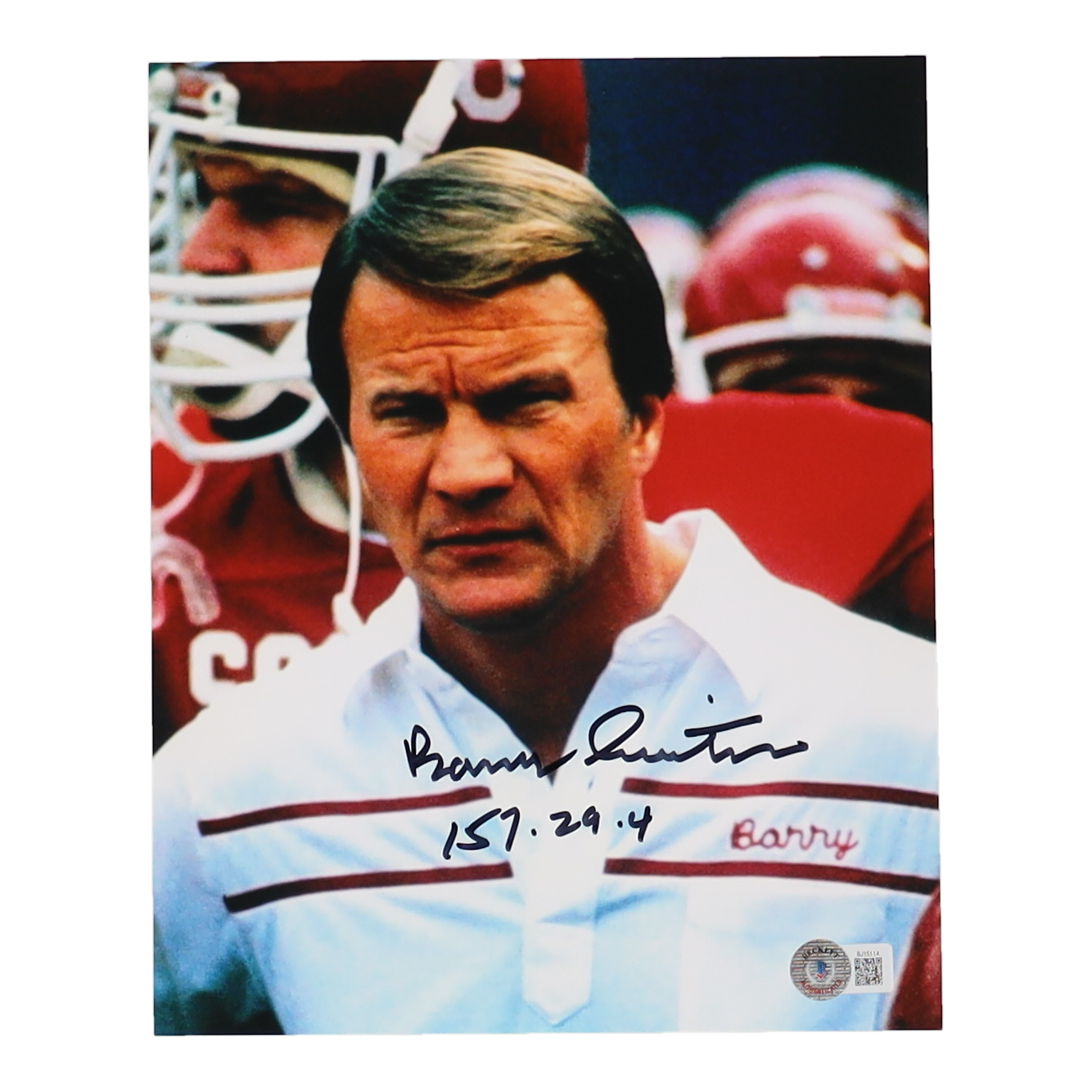 Barry Switzer Signed Oklahoma Sooners 8x10 Photo Inscribed "157.29.4" (Beckett)